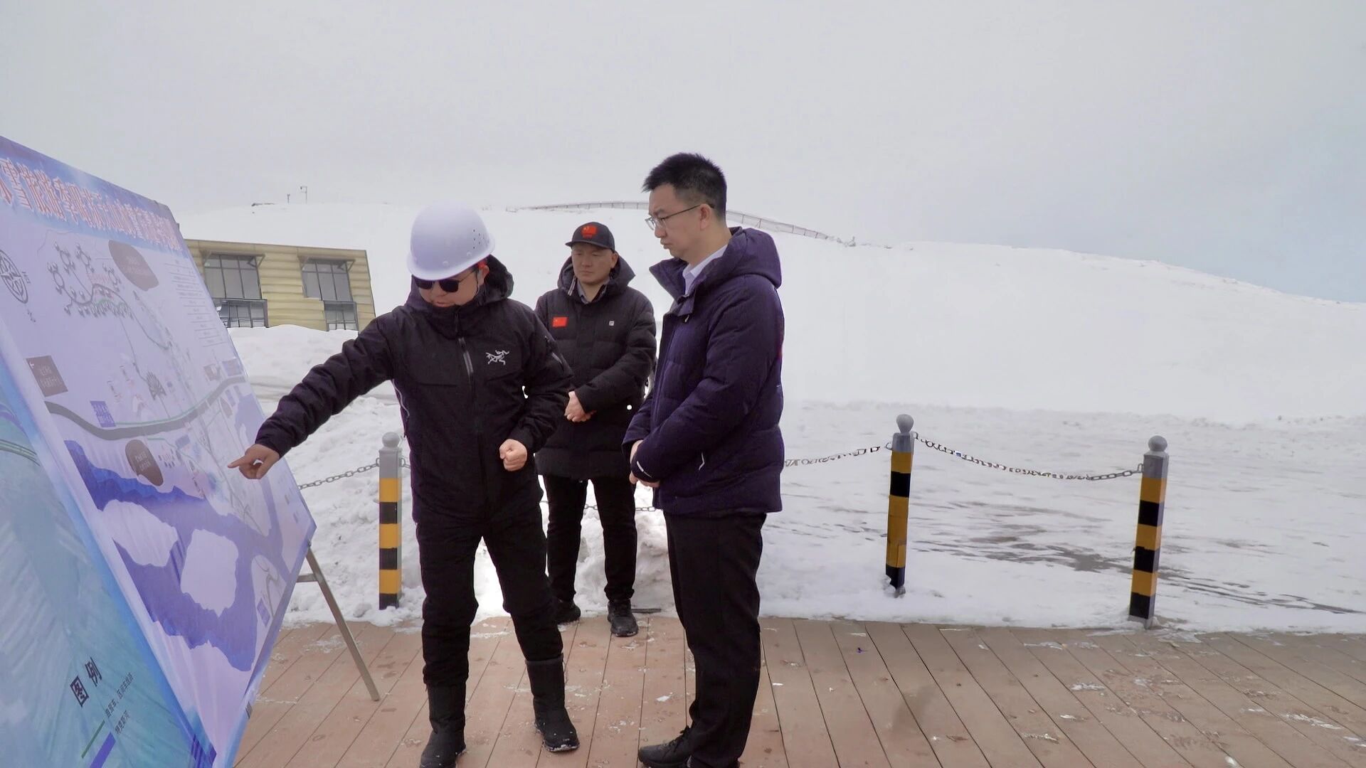 会前,何江一行深入昭苏天山冰雪乐园等重点项目现场进行调研。在详细听取项目负责人关于乐园功能分区、设施布局、游览动线及商业配套规划等内容的汇报后,他强调,项目建设必须将施工安全与运营安全置于首位,同时要紧扣游客多元化、高品质的消费需求,科学规划、精心布局,着力完善“吃住行游购娱”全链条消费场景,打造功能完善、体验丰富、安全舒适的冰雪旅游核心载体,为冰雪旅游季的成功举办奠定坚实基础。