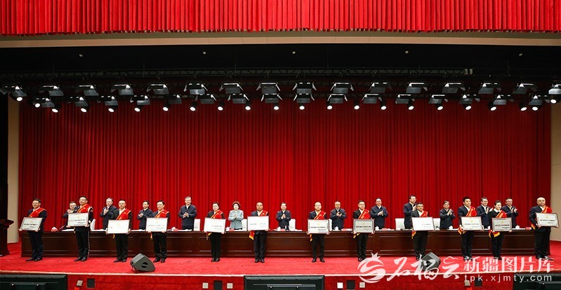 田湘利、伊力扎提·艾合买提江、哈丹·卡宾、张文胜出席,王琳主持。自治区各单位负责同志、先进典型代表等在主会场参加会议。各地州市、县市区设分会场。