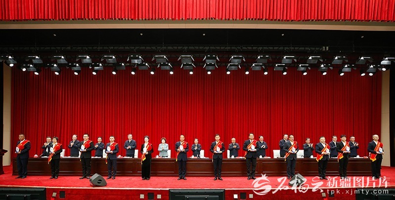 自治区党委副书记、自治区主席艾尔肯·吐尼亚孜,自治区人大常委会主任祖木热提·吾布力,自治区政协主席努尔兰·阿不都满金,自治区党委副书记、兵团政委何忠友,自治区党委副书记张柱、陈明国出席。