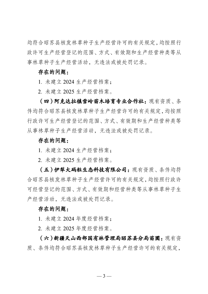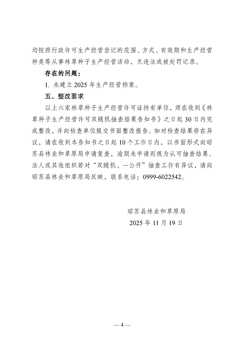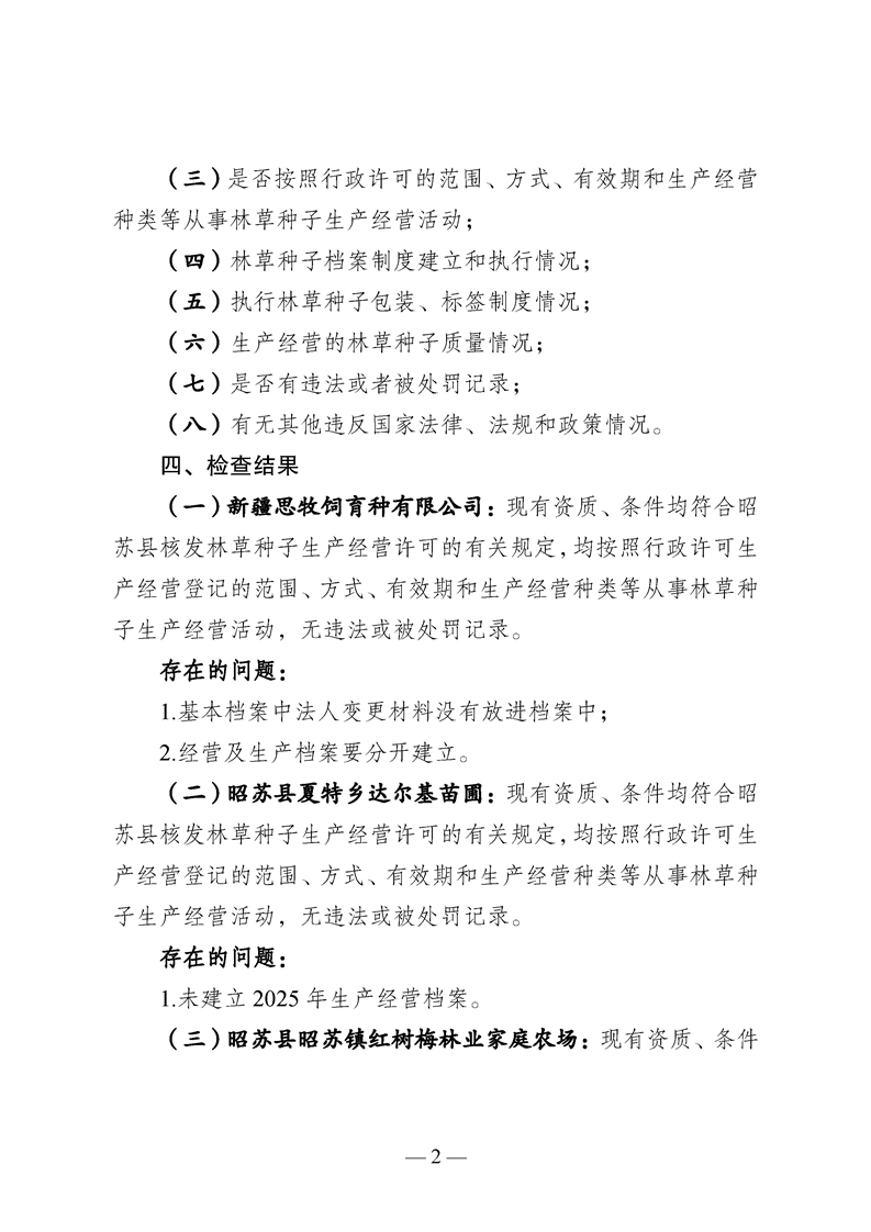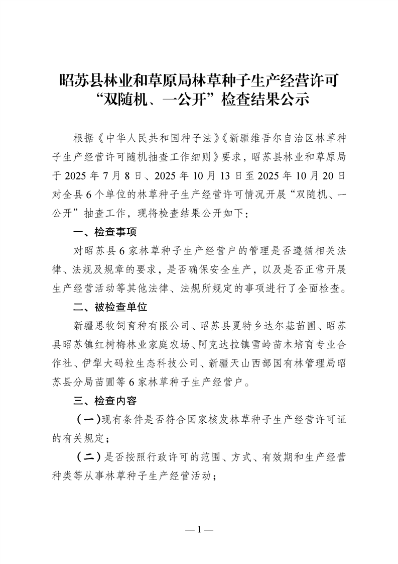 昭苏县林业和草原局林草种子生产经营许可“双随机、一公开”检查结果公示