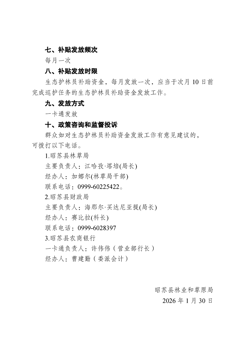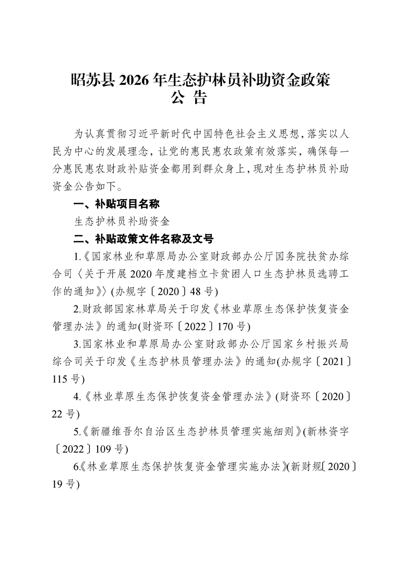 昭苏县2026年生态护林员补助资金政策公告