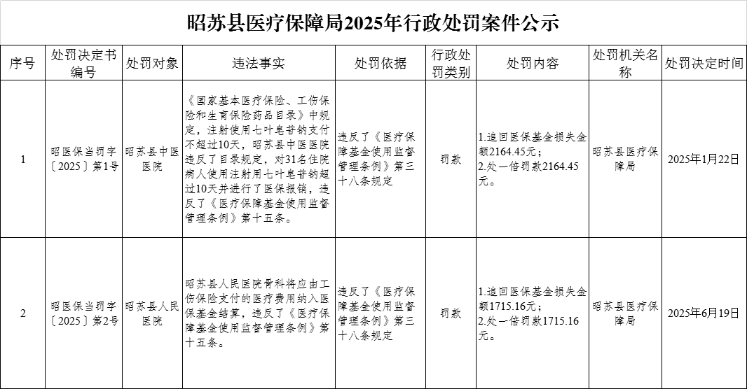 昭苏县医疗保障局2025年行政处罚案件公示