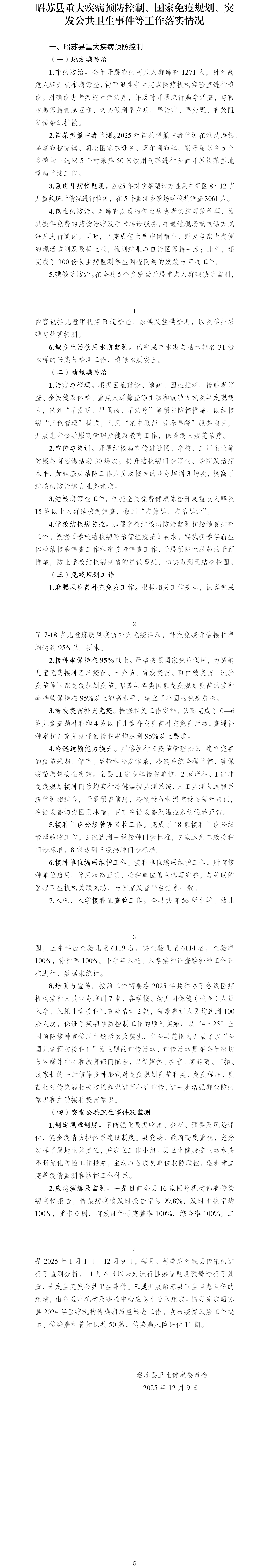 昭苏县重大疾病预防控制、国家免疫规划、突发公共卫生事件等工作落实情况
