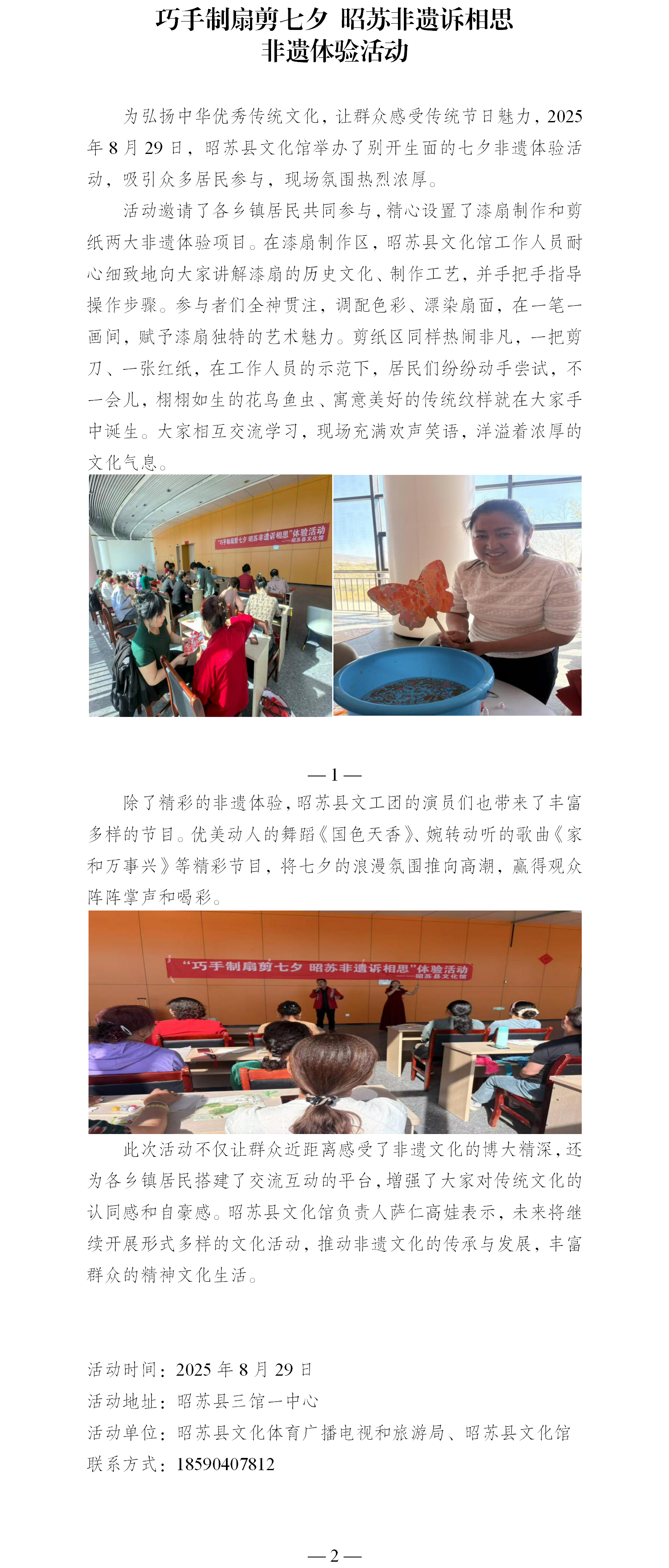 巧手制扇剪七夕 昭苏非遗诉相思 非遗体验活动