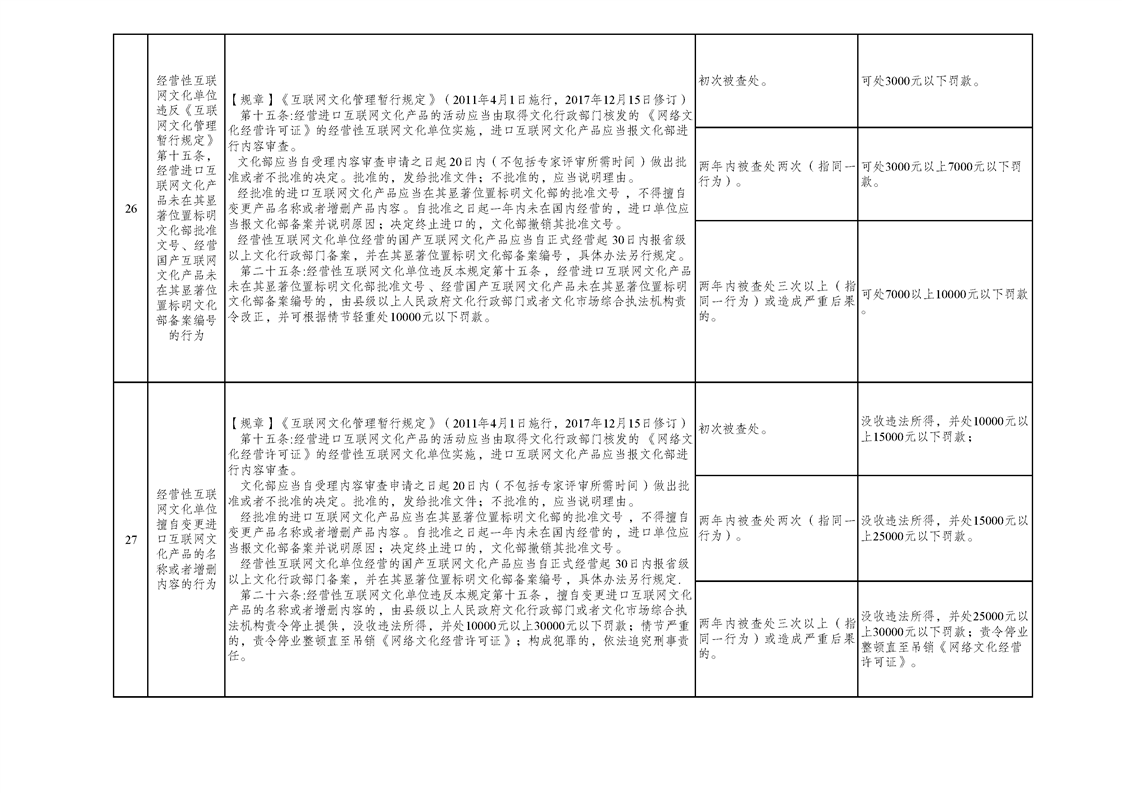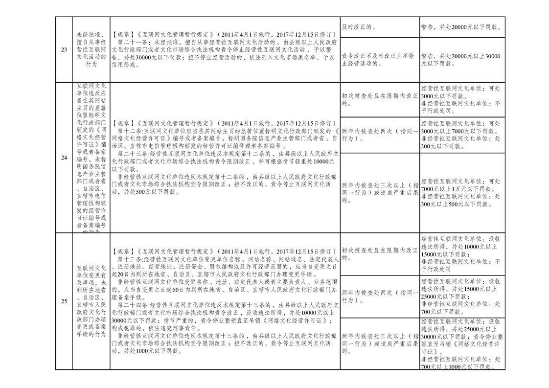 新疆维吾尔自治区文化市场综合执法行政处罚裁量基准(互联网娱乐营业场所)