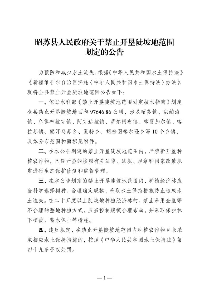 昭苏县人民政府关于禁止开垦陡坡地范围划定的公告