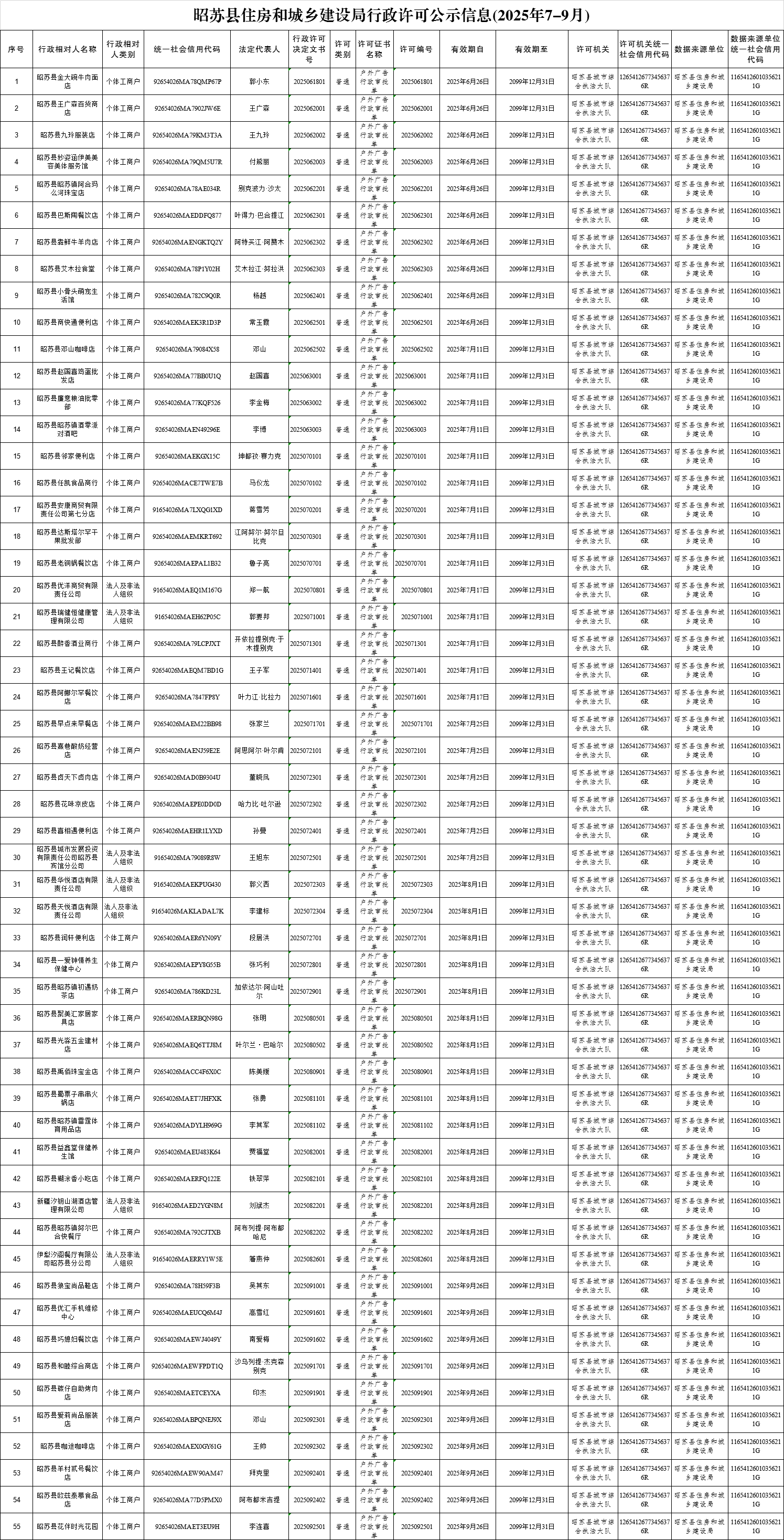 昭苏县住房和城乡建设局行政许可公示信息(2025年7-9月)