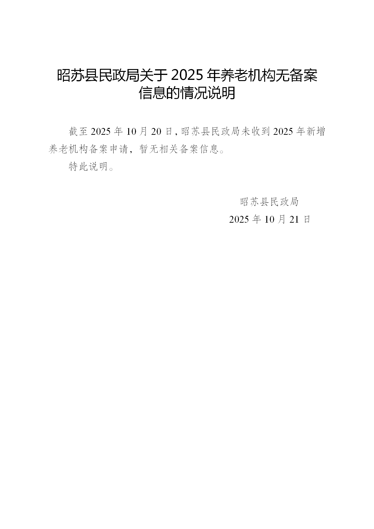 昭苏县民政局关于2025年养老机构无备案信息的情况说明
