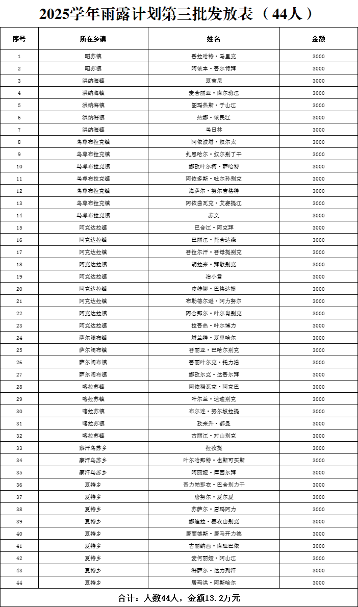 关于昭苏县2025学年第三批“雨露计划”受助学生名单公示的通知