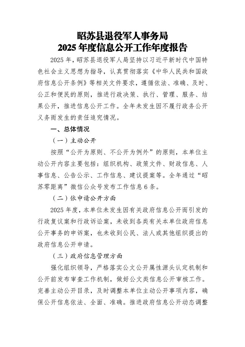 昭苏县退役军人事务局2025年度信息公开工作年度报告