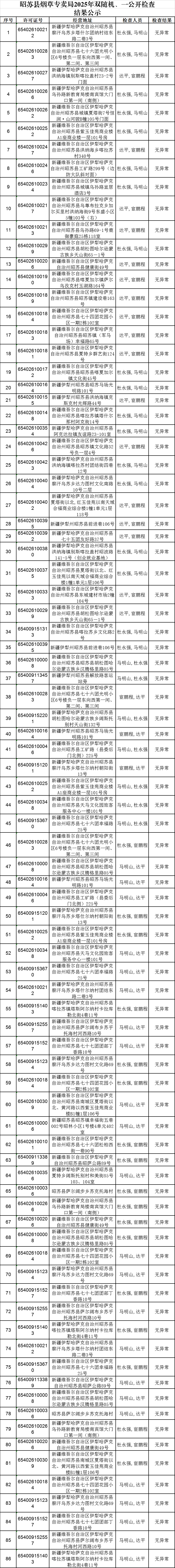昭苏县烟草专卖局2025年双随机、一公开检查结果公示