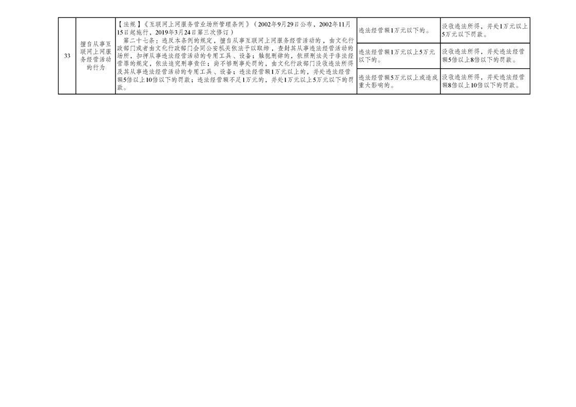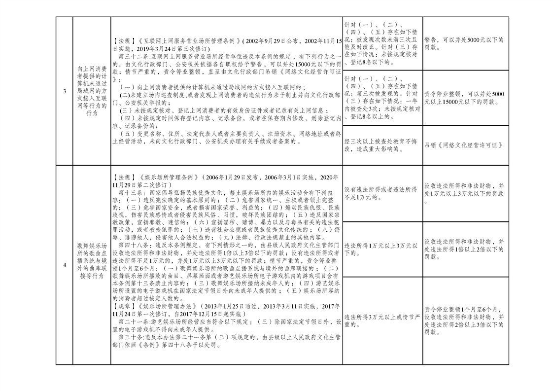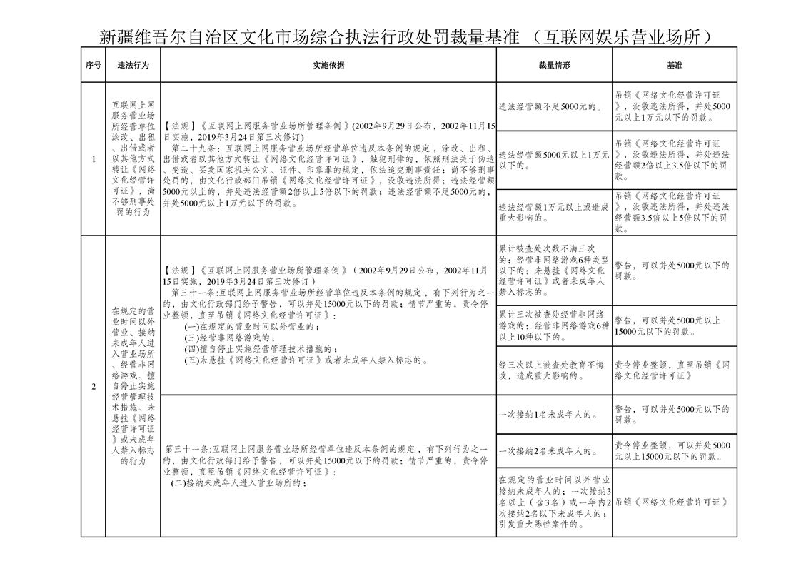 新疆维吾尔自治区文化市场综合执法行政处罚裁量基准(互联网娱乐营业场所)