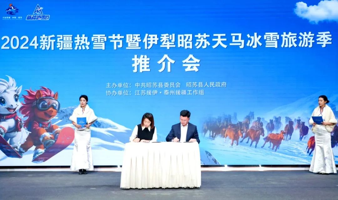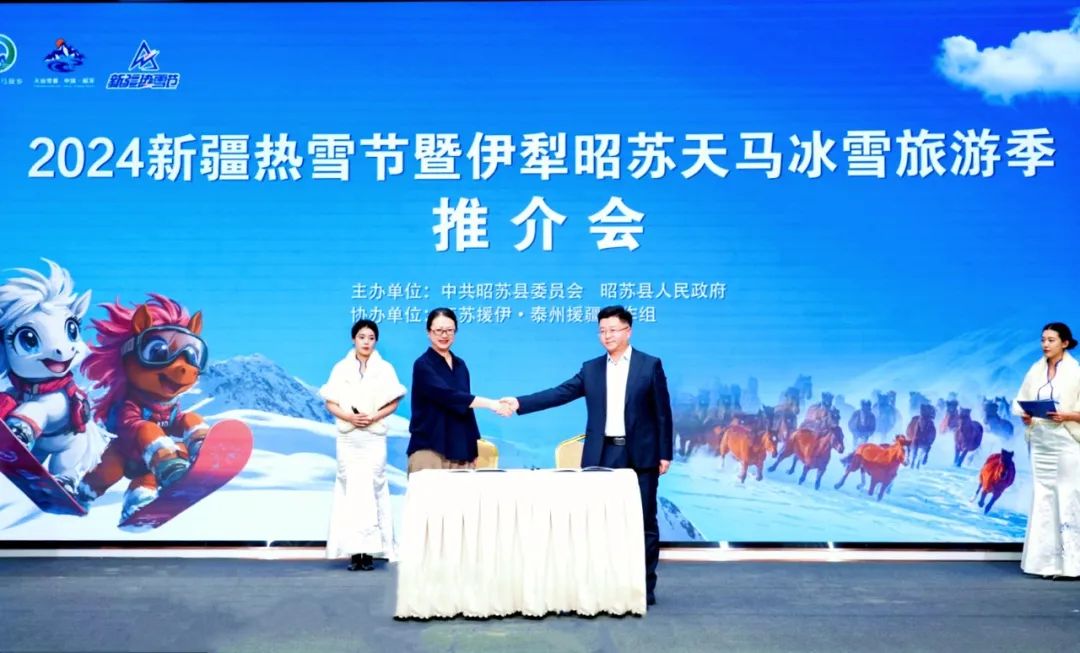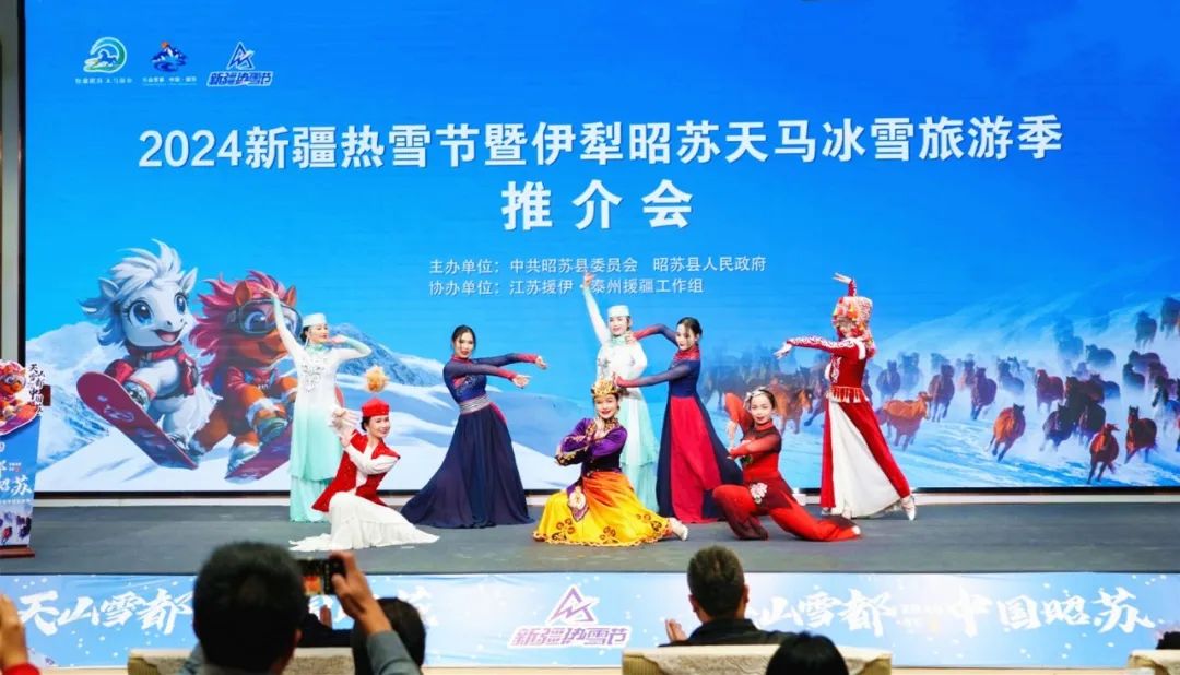 昭苏县委副书记、泰州援疆工作组组长王辉在推介致辞中表示,昭苏县依托优质的冰雪资源,积极构建“一核两翼多节点”的冰雪旅游空间布局,开发冰雪观光、冰雪运动、冰雪民俗系列旅游产品,让看天马踏雪、看天鹅翩跹、赏雾凇满城、游夏塔冰川、泡千年温泉、滑极致粉雪成为了冬季旅游的新亮点。处处是景、步步如画的昭苏真诚欢迎旅游开发投资企业到昭苏投资兴业,共享旅游高质量发展红利;热忱欢迎各地游客做客昭苏,纵情冰雪世界、尽享冬日乐趣;真心希望与各大旅行社加强合作交流,打造特色旅游品牌,让昭苏成为游客最向往的诗和远方。