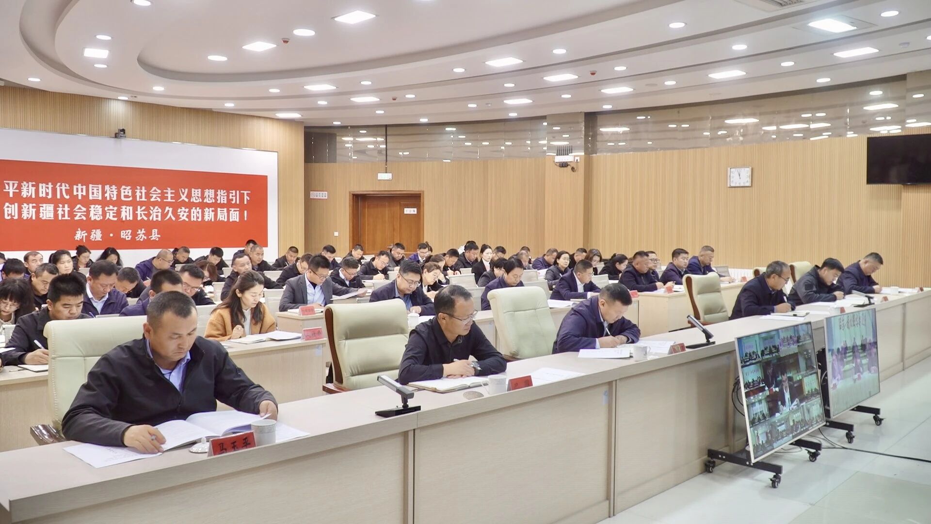 会议以视频形式开至各乡镇。高辉、努尔古丽·居马德力、成广一、王辉、艾尼亚尔·艾尼瓦尔、加依娜·跃进、潘锦等县四套班子领导,县人民法院、县人民检察院、昭苏马场、伊犁种马场主要领导,县直单位、驻昭单位、部分企业主要负责人在主会场参加会议。