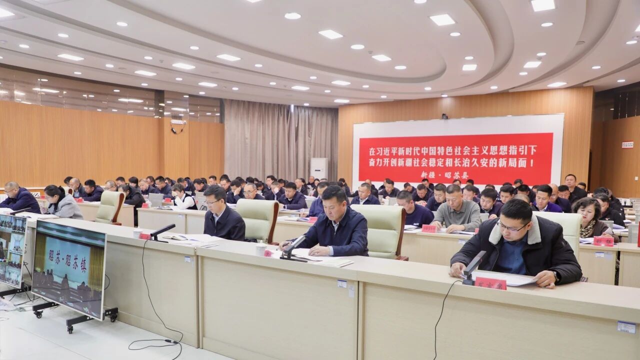 会议以视频形式开至各乡镇。高辉、努尔古丽·居马德力、王文亭、王辉、施康振、杨民敬、艾尼亚尔·艾尼瓦尔、王吉昆、王永华、加依娜·跃进、潘锦、陈磊、孙杉等县四套班子领导,县人民法院、县人民检察院、昭苏马场、伊犁种马场主要领导,县直单位、驻昭单位、部分企业主要负责人在主会场参加会议。