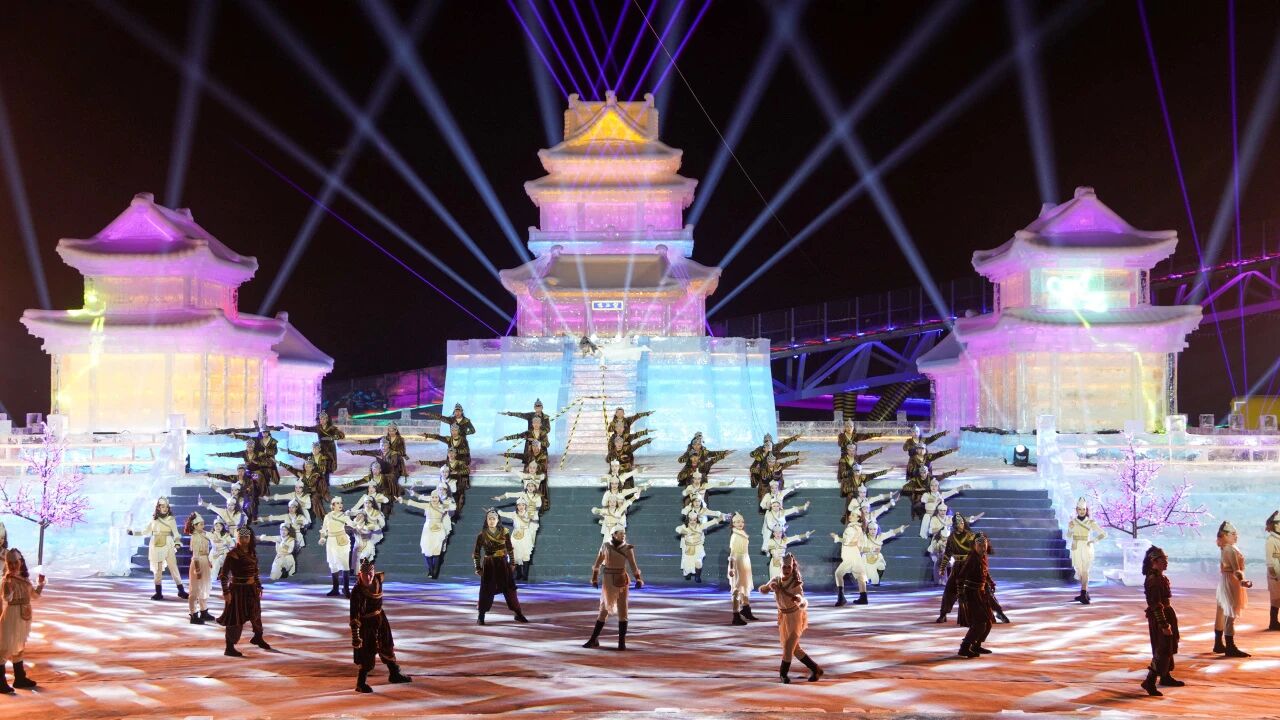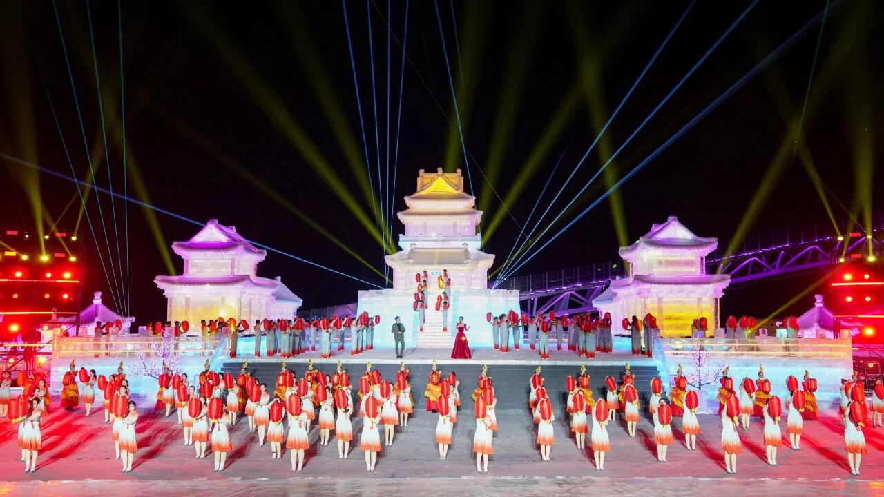 开幕式文艺演出精彩纷呈,舞台背景采用了以“望海楼”为原型的冰雕造型,在变幻的灯光下晶莹剔透。歌手阿来・阿依达尔汗一曲《冰雪昭苏正浪漫》唱出冬日柔情,随后伸缩球现代舞、吉祥物互动、滑雪滑冰特技表演接连上演,不断点燃现场气氛。知名歌手黄征献唱《奔跑》等经典曲目,配合花样滑冰的优美舞姿与绚烂特效,将全场气氛带入高潮。