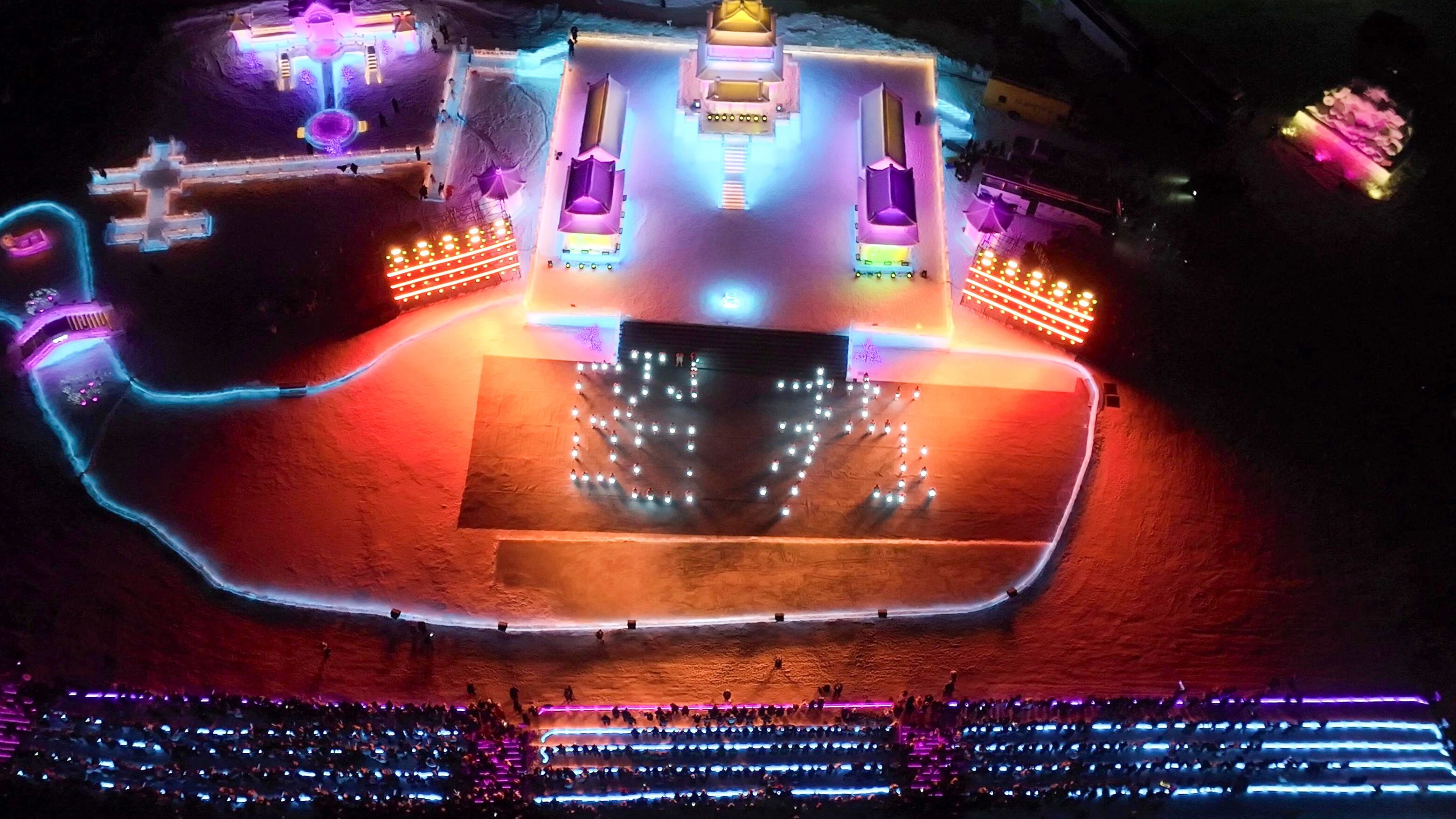 由王洋领衔的科技舞蹈艺术秀《马踏蓝冰》尤为惊艳,演员们以哈萨克族传统舞蹈“黑走马”为基础,融合蓝色激光与定制冰道具,杂技演员化身“天马”完成高难度动作,科技感与民族风碰撞出奇幻火花。尾声,200名演员手持冰灯汇聚舞台,共同演绎《灯火里的中国》,充分彰显了“天山雪都”的喜庆氛围与时代气息。