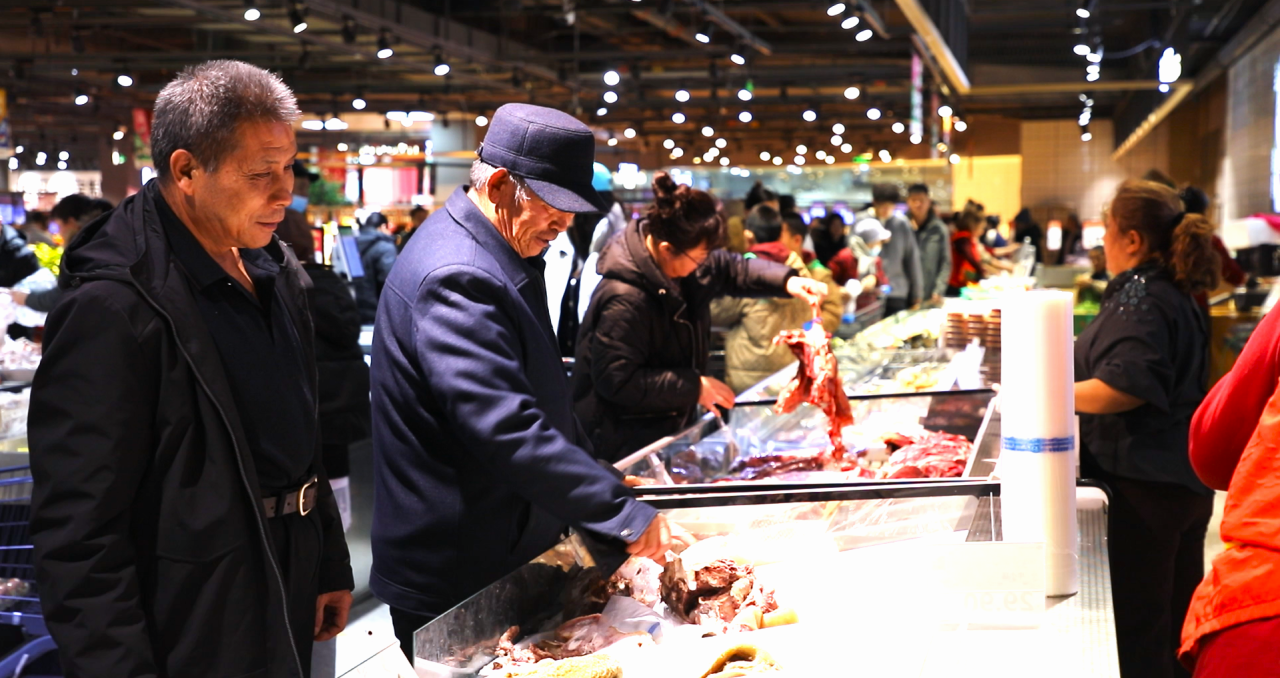 活动当天,超市内灯笼高挂、装饰红火,货架整洁,商品琳琅。前来采购的居民络绎不绝,大家在粮油区、生鲜区、零食区、礼盒区等区域驻足挑选,有序购置所需年货,现场热闹而有序。昭苏县昭苏镇白石峰社区居民赵红菊说:“今天来到超市,人特别多,价格也很实惠,尤其是蔬菜水果品种齐全、价格亲民。非常感谢超市为我们提供这么新鲜的蔬菜水果和各类农产品。”
