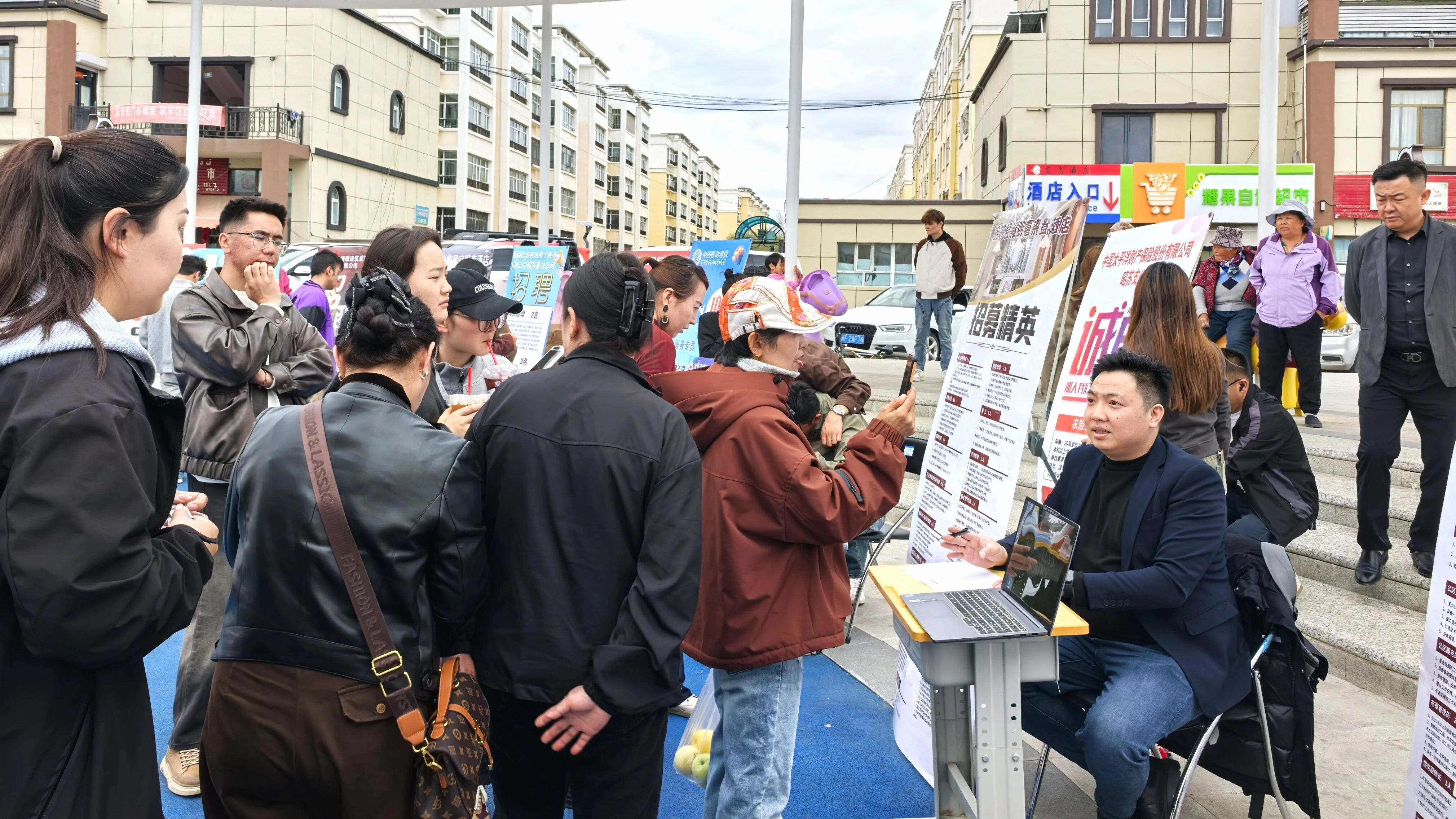招聘会现场人头攒动,气氛热烈。服务站工作人员设立咨询台,针对群众关心的就业政策、岗位条件、薪资待遇、用工保障等问题,逐一进行耐心细致的解答。服务专员还利用网络开展直播,为线上求职者提供岗位匹配、前景分析、职业指导等一站式服务,确保招聘会惠及更多群众。