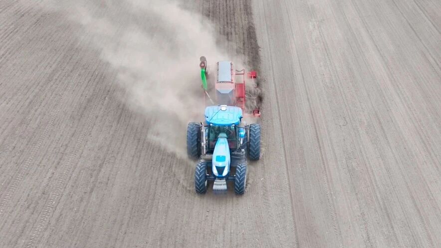 在昭苏县瑞丰农业科技有限公司的春小麦育种基地,气吸式精量播种机来回穿梭,开沟、下种、覆土、镇压一气呵成。播种机驶过之处,一行行整齐的种沟蜿蜒延伸,一粒粒饱满的春小麦种子被精准播入土壤,为后续出苗和丰产埋下希望的种子。该公司种植科科长朱建新介绍:“今年,我们预计要育种5000多亩。我们主要使用气播机育种,气播机下种量比较精准。我们趁着现在墒情还好,抓紧抢播。”