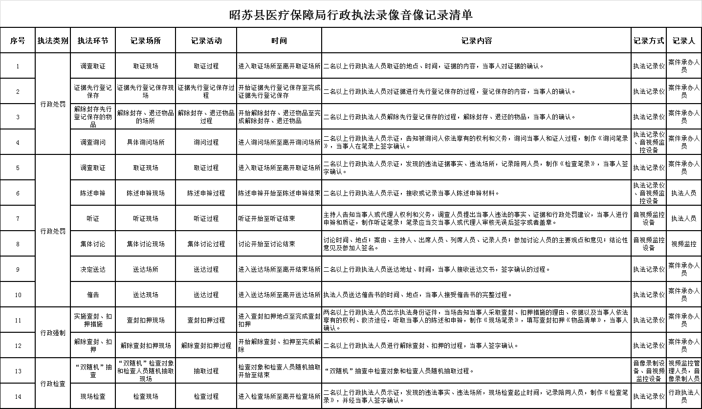 昭苏县医疗保障局行政执法录像音像记录清单