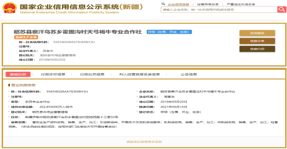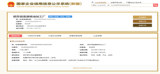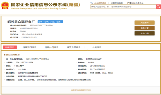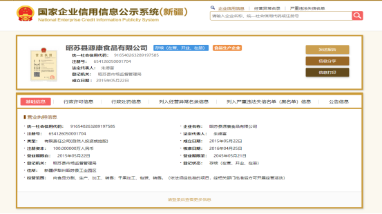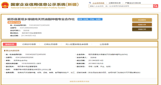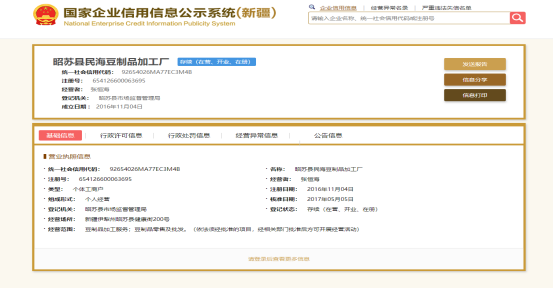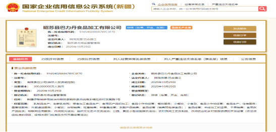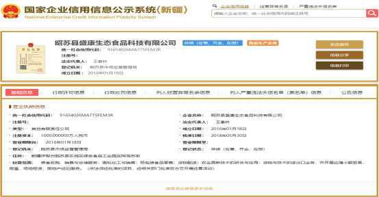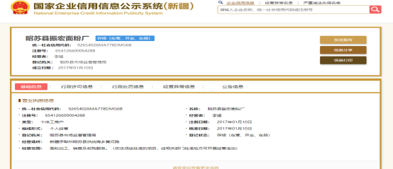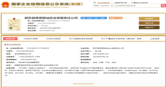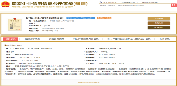昭苏县食品生产企业基本信息