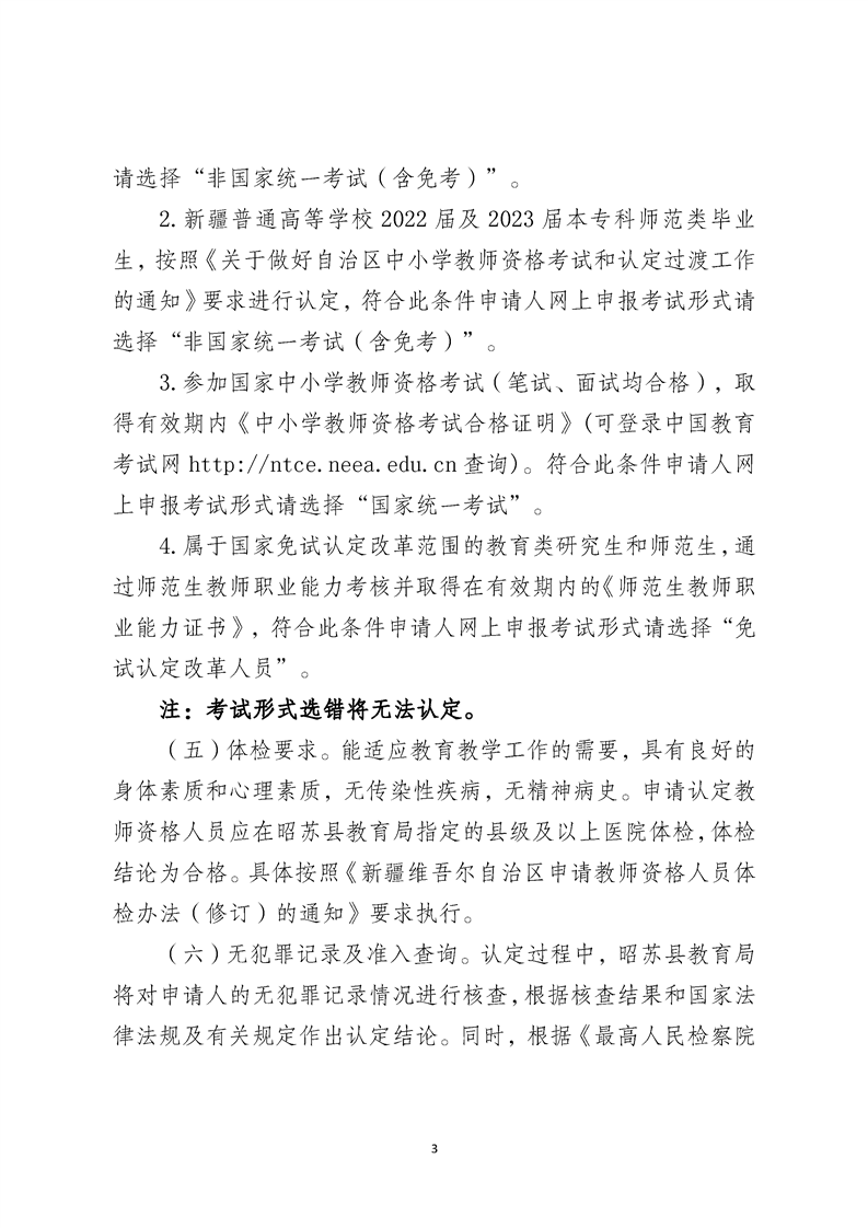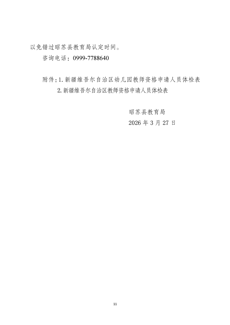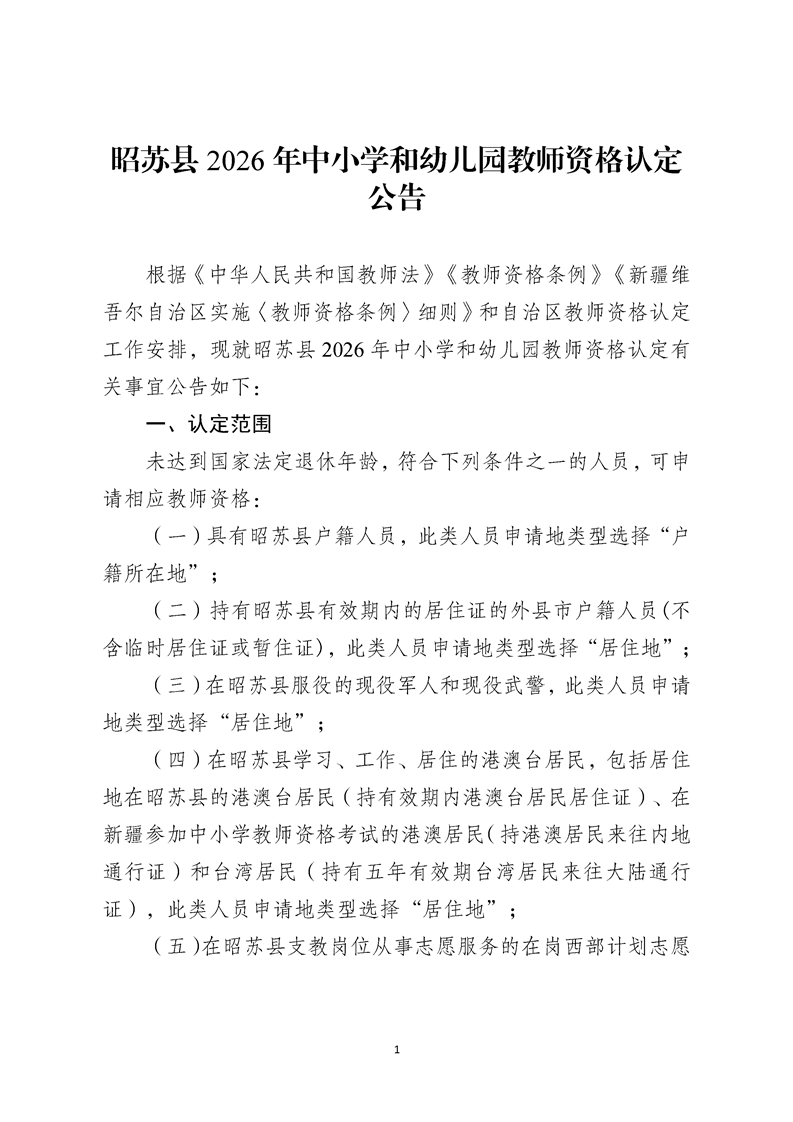 昭苏县2026年中小学和幼儿园教师资格认定公告