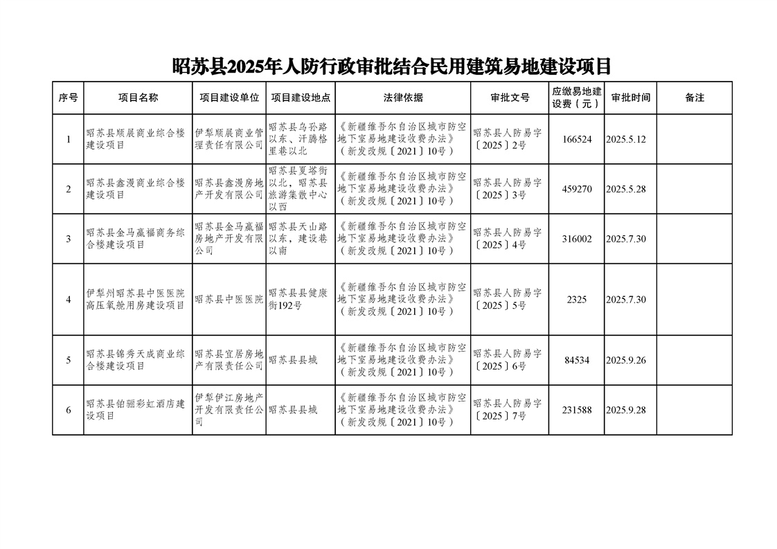 昭苏县2025年人防行政审批结合民用建筑易地建设项目