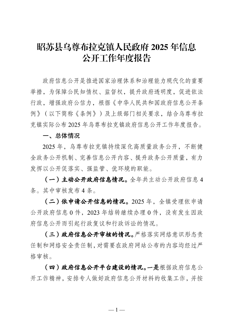 昭苏县乌尊布拉克镇人民政府2025年信息公开工作年度报告.pdf