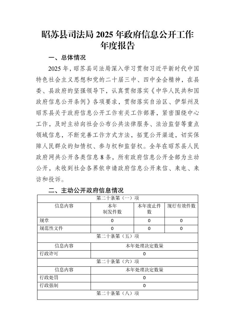 昭苏县司法局2025年政府信息公开工作年度报告