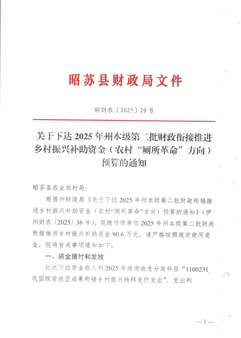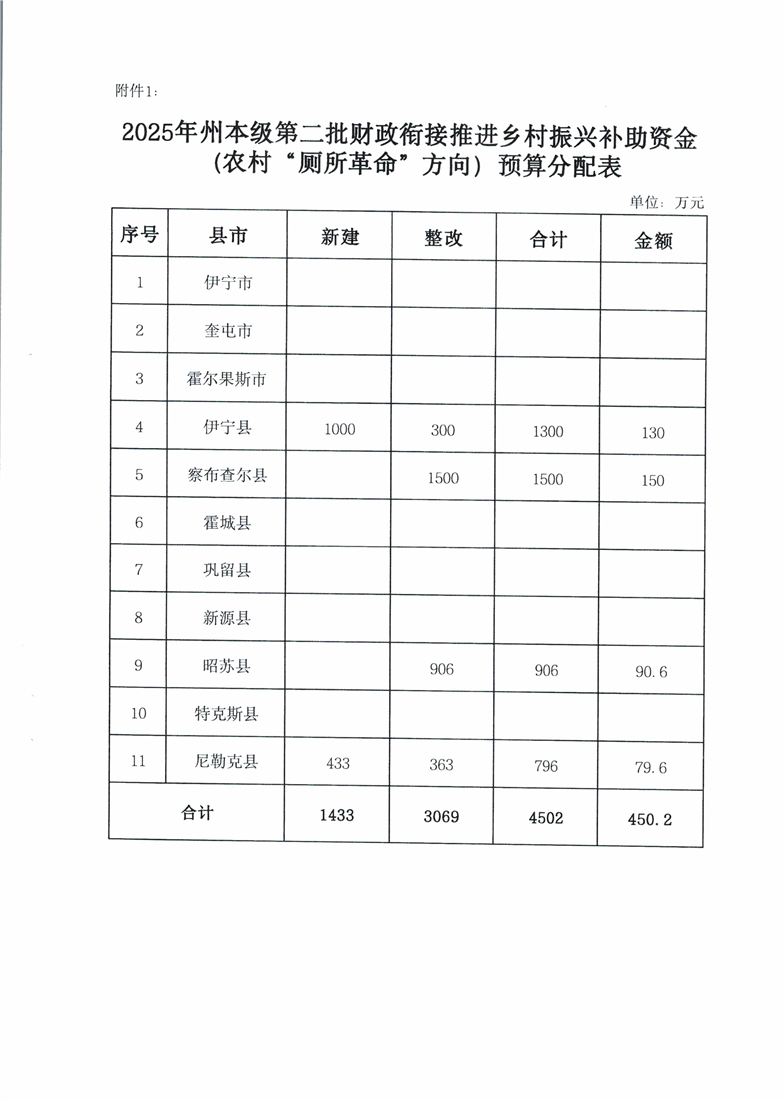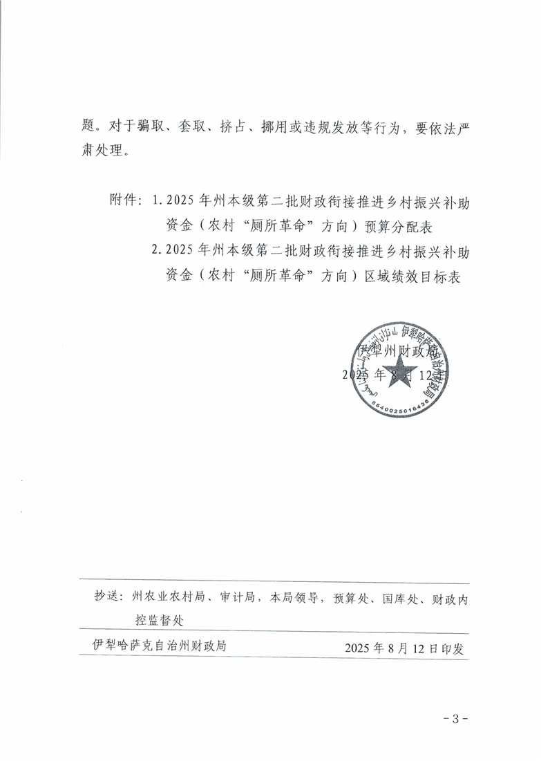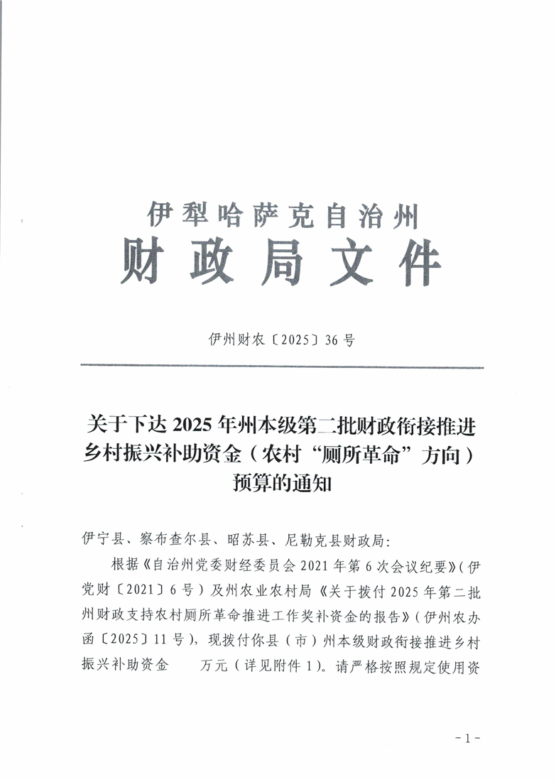伊州财农【2025】36号-关于下达2025年州本级第二批财政衔接推进乡村振兴补助资金(农村”厕所革命“方向)预算的通知