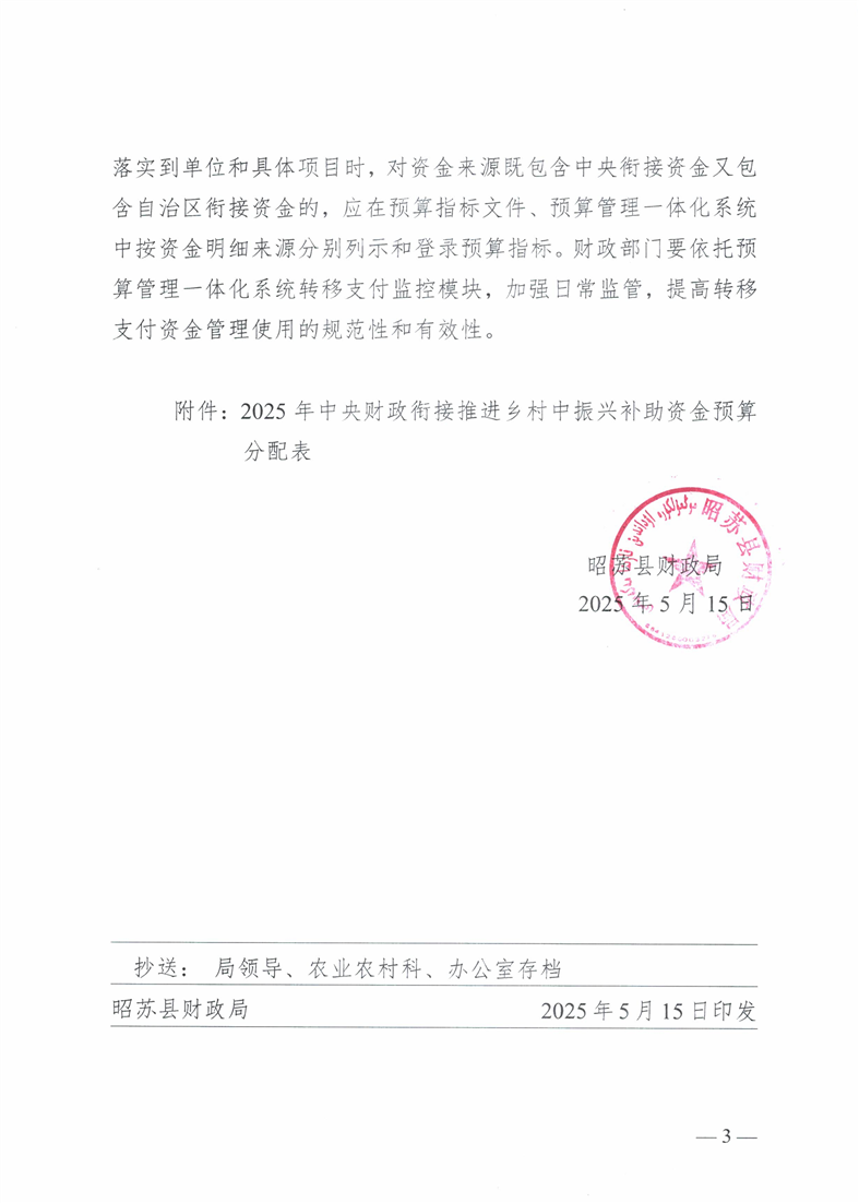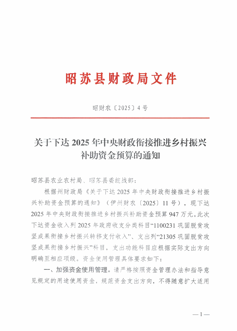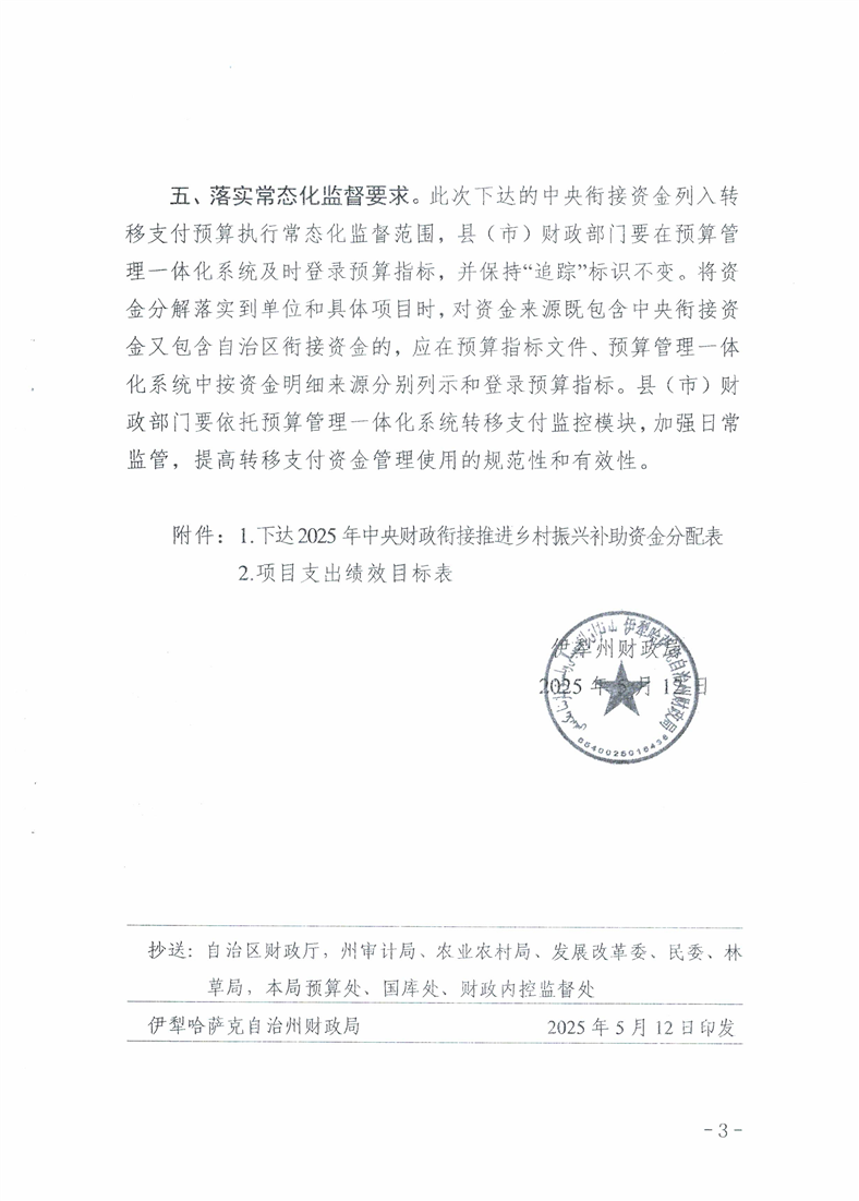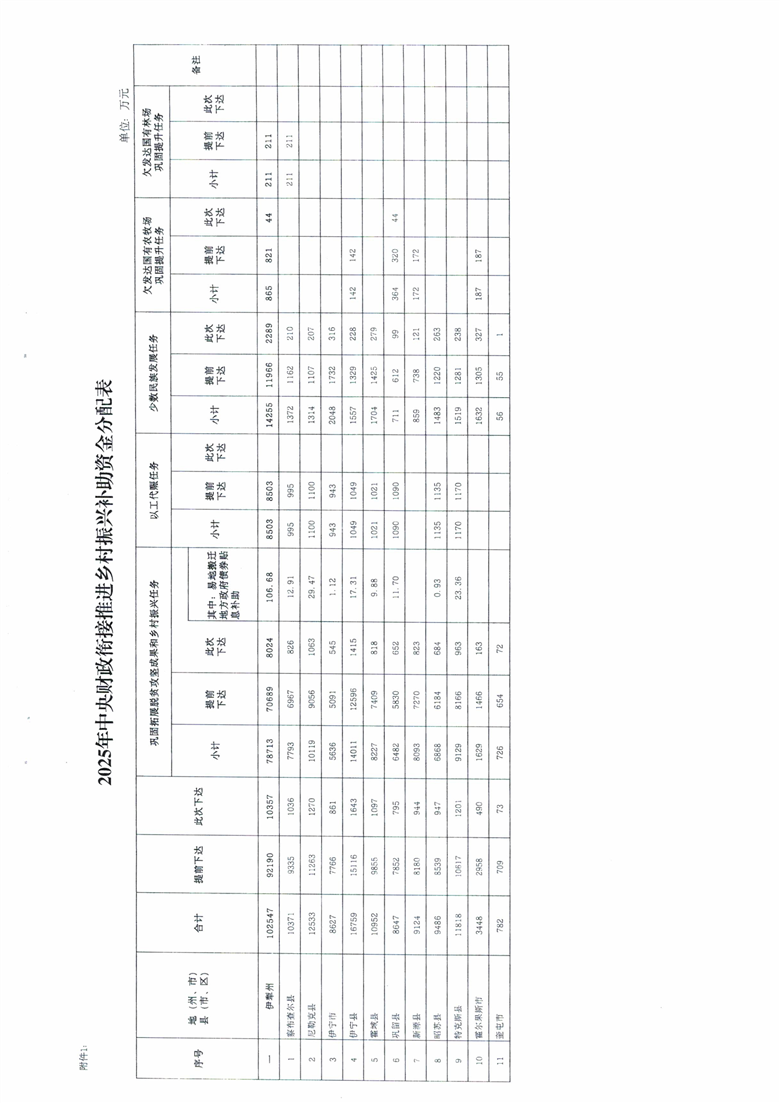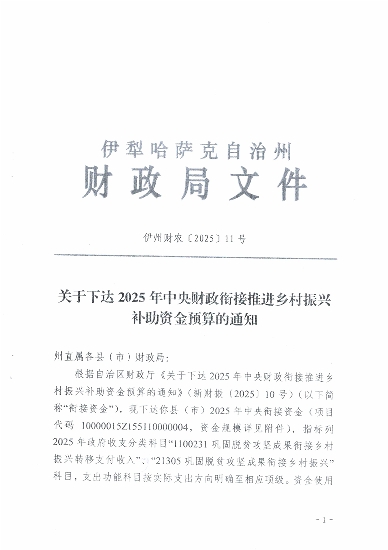 伊州财农【2025】11号-关于下达2025年中央财政衔接推进乡村振兴补助资金预算的通知