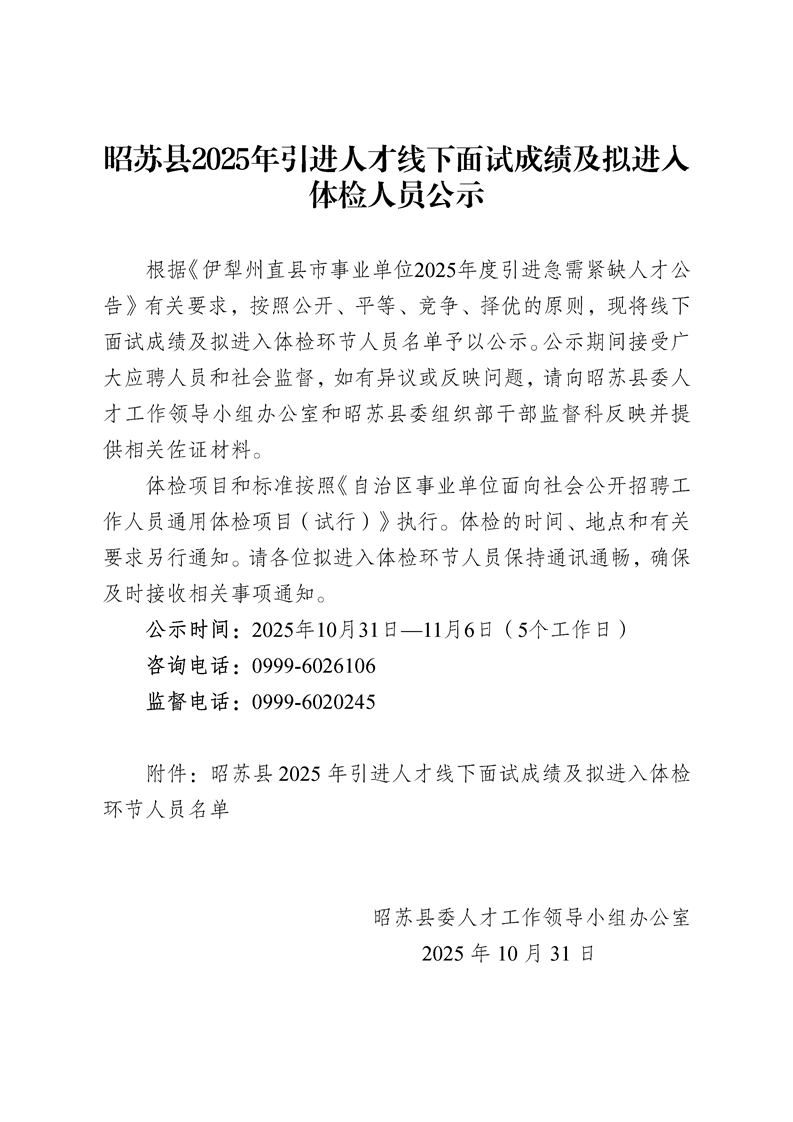 昭苏县2025年引进人才线下面试成绩及拟进入体检人员公示