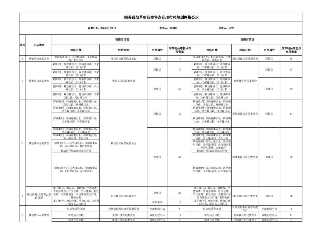 昭苏县烟草制品零售点合理布局规划网格公示