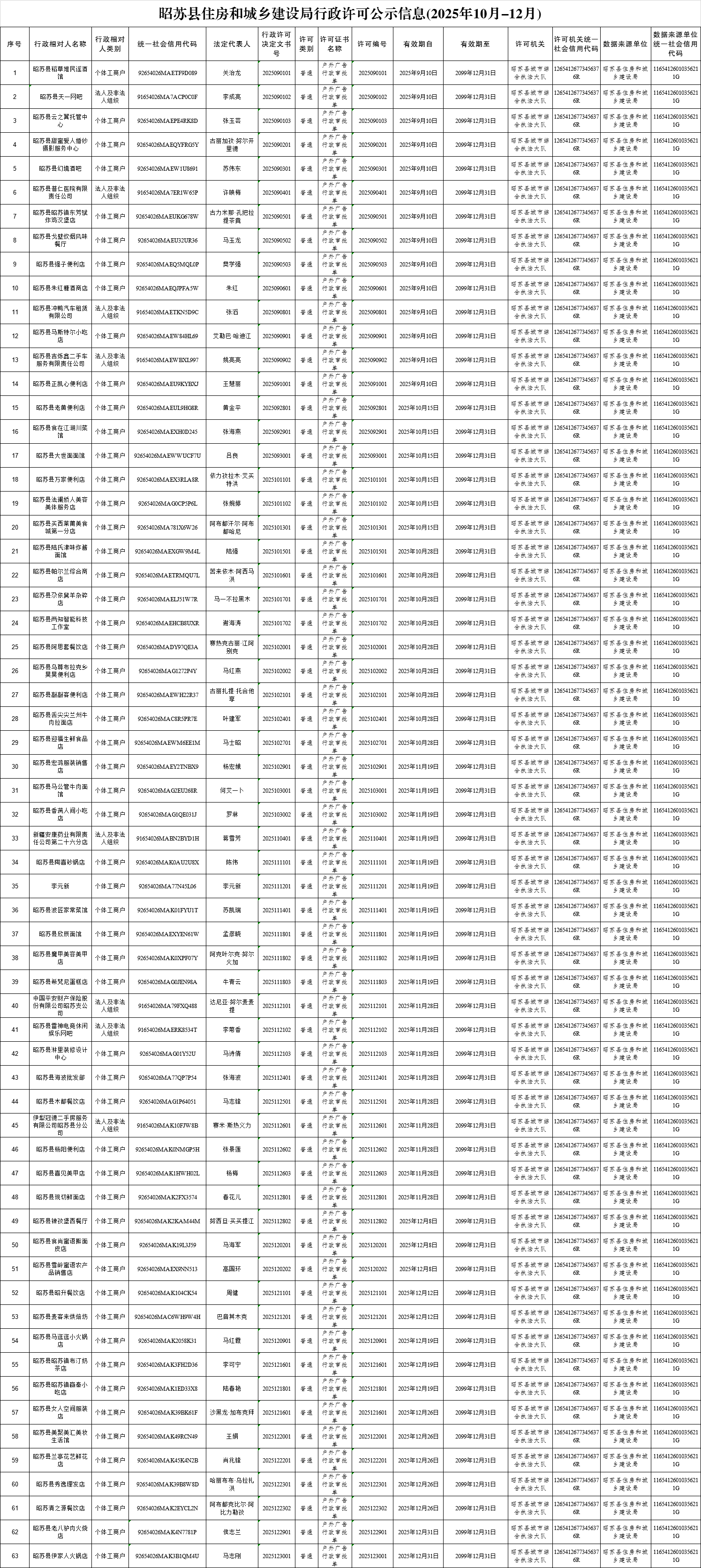 昭苏县住房和城乡建设局行政许可公示信息(2025年10月-12月)