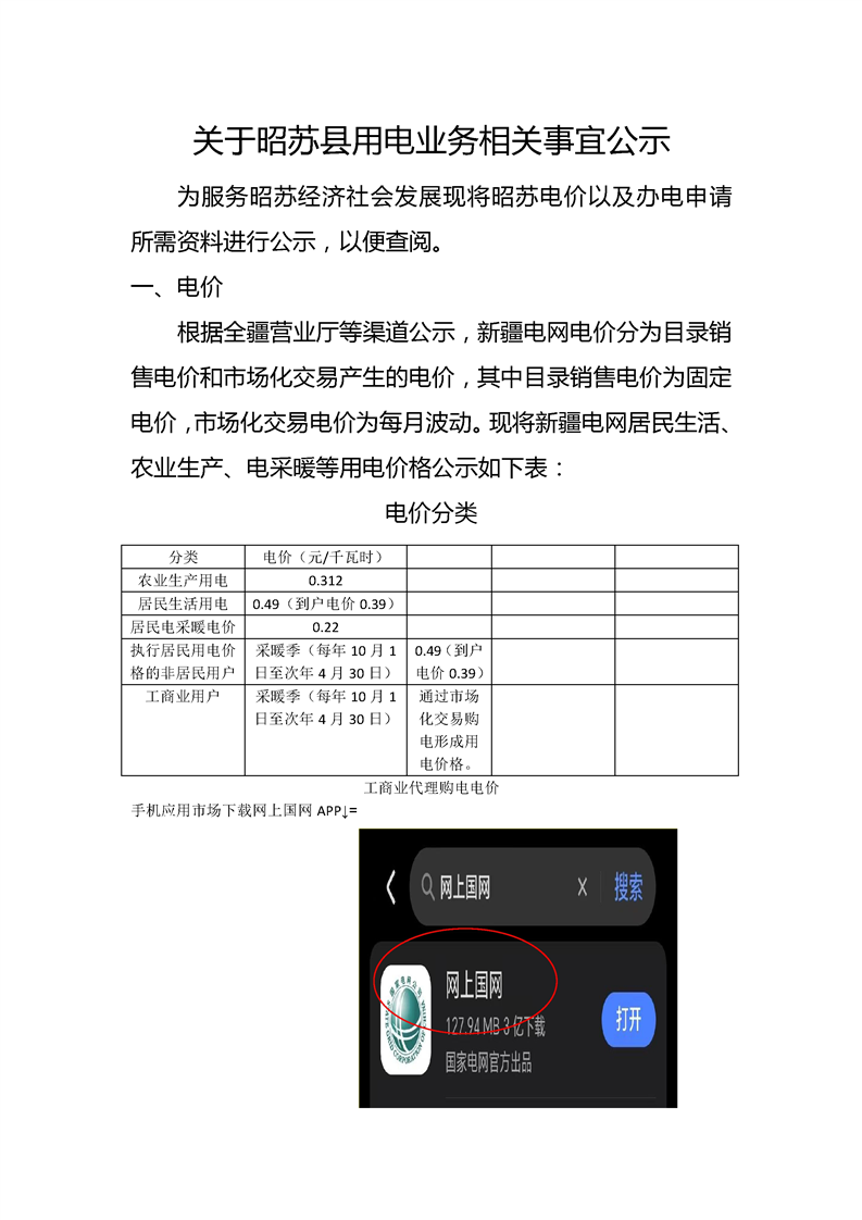 关于昭苏县用电业务相关事宜公示