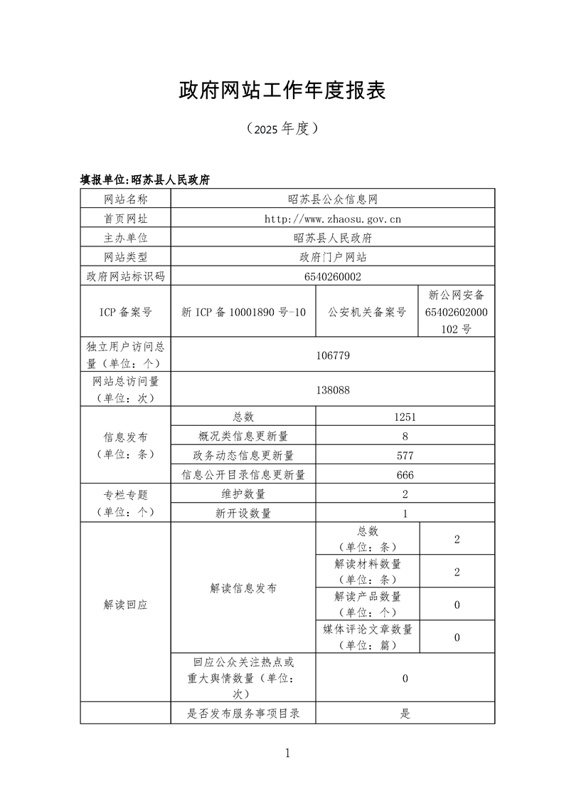 昭苏县2025年度政府网站工作年度报表