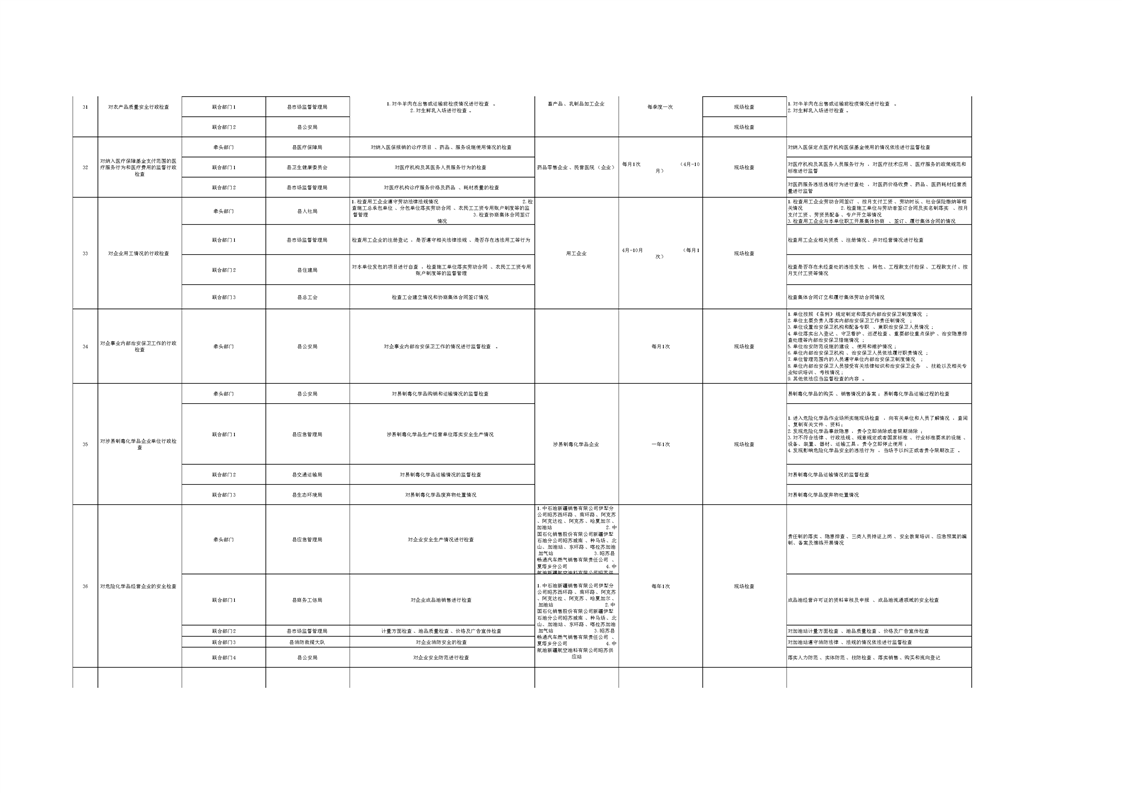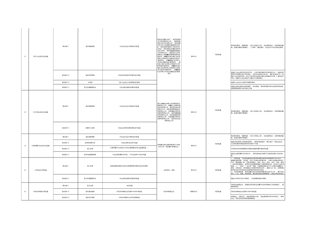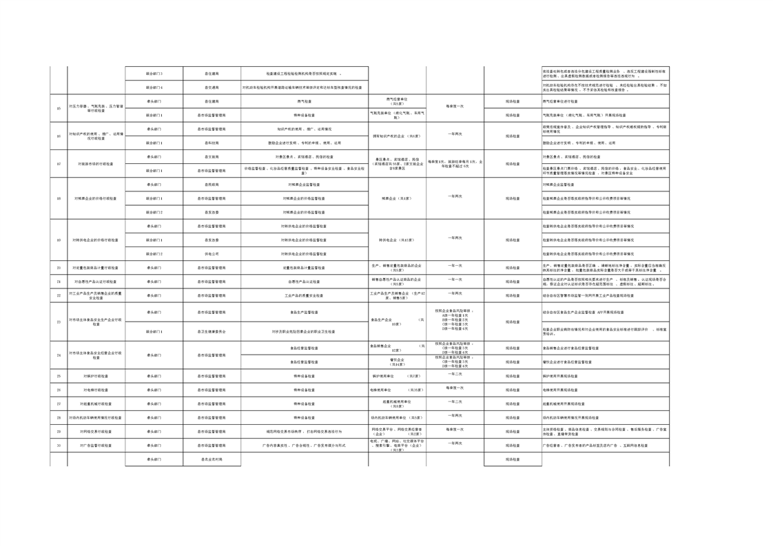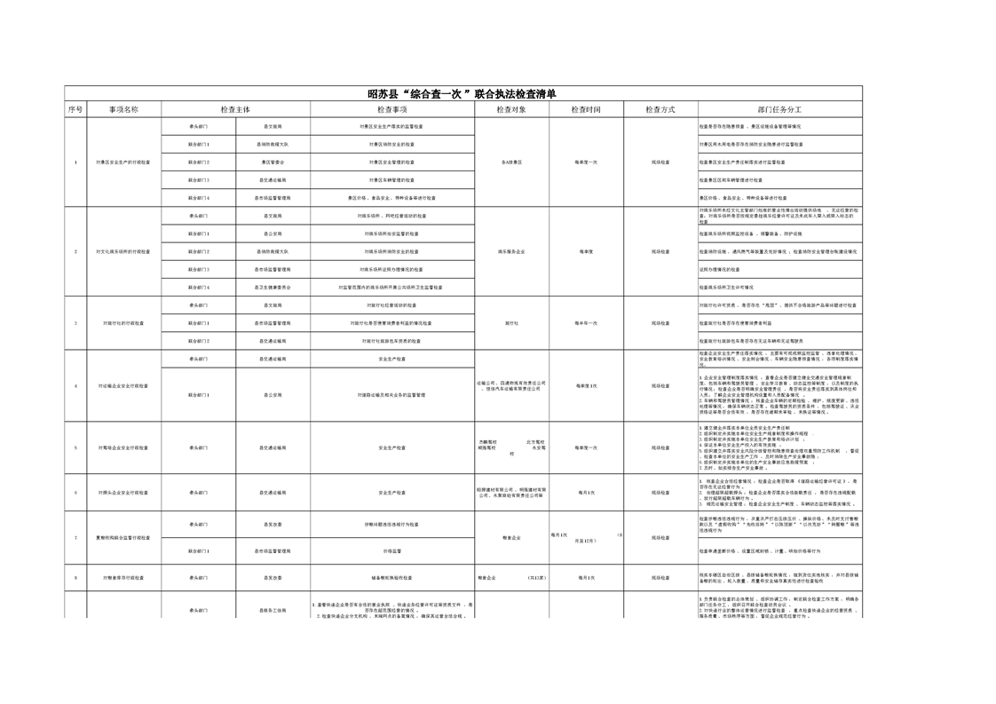 昭苏县“综合查一次”联合执法检查清单
