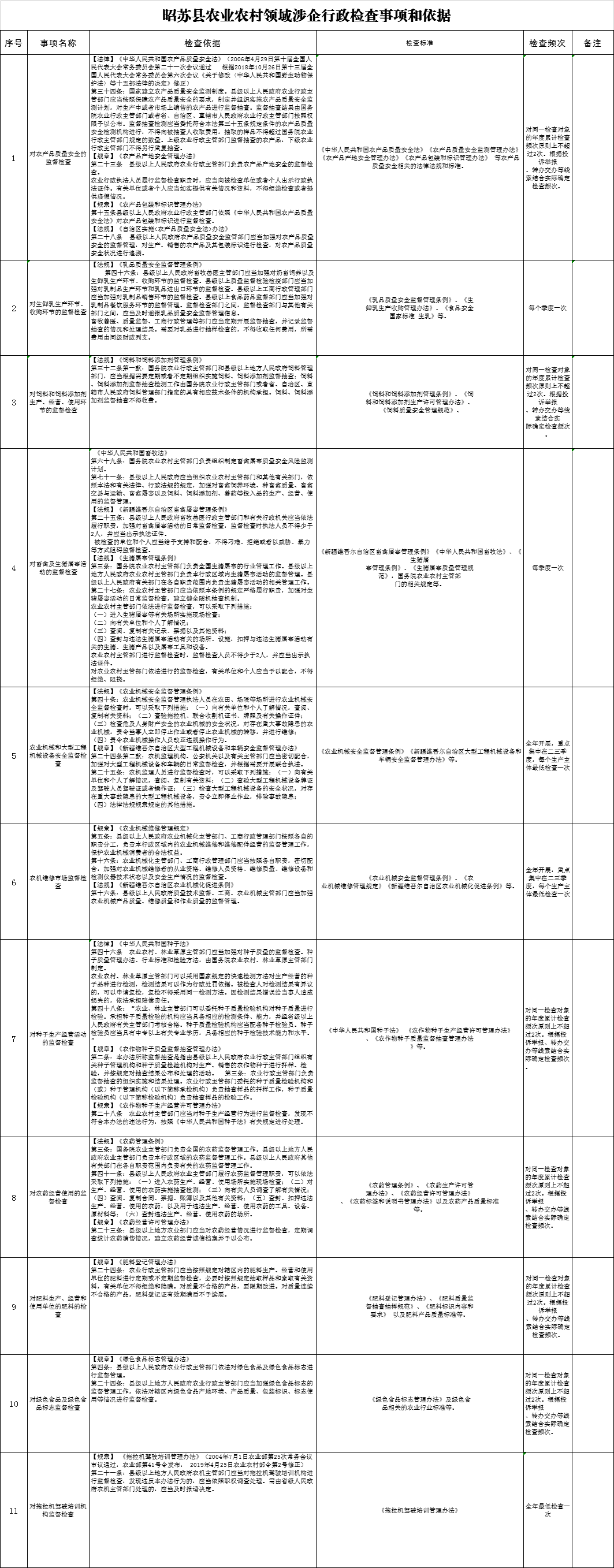 昭苏县农业农村领域涉企行政检查事项和依据