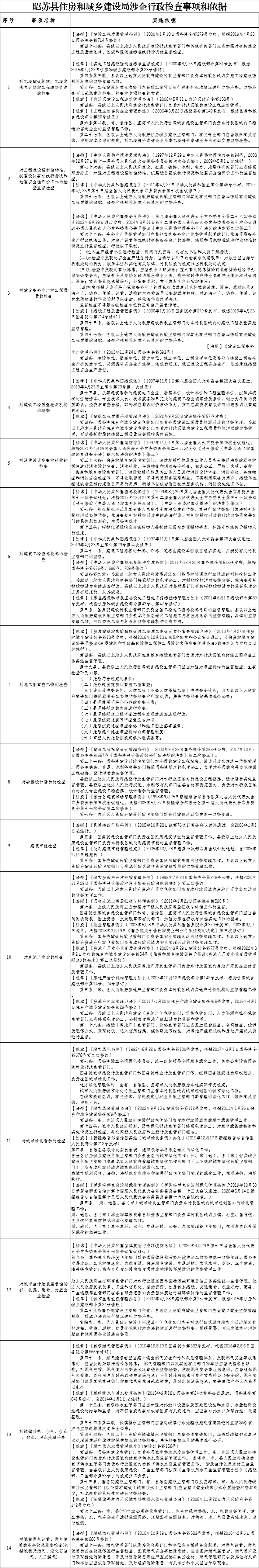 昭苏县住房和城乡建设局涉企行政检查事项和依据