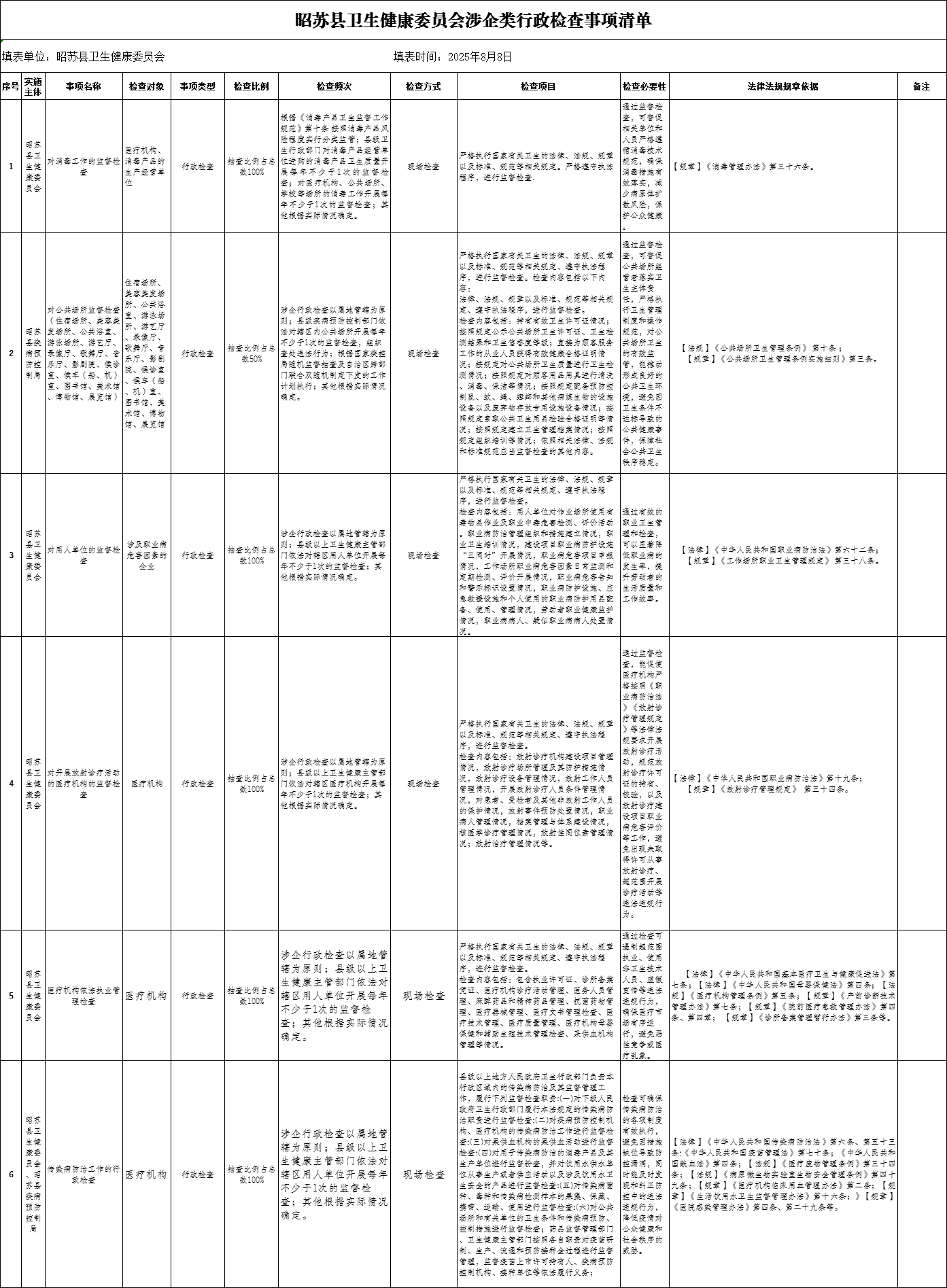 昭苏县卫生健康委员会涉企类行政检查事项清单