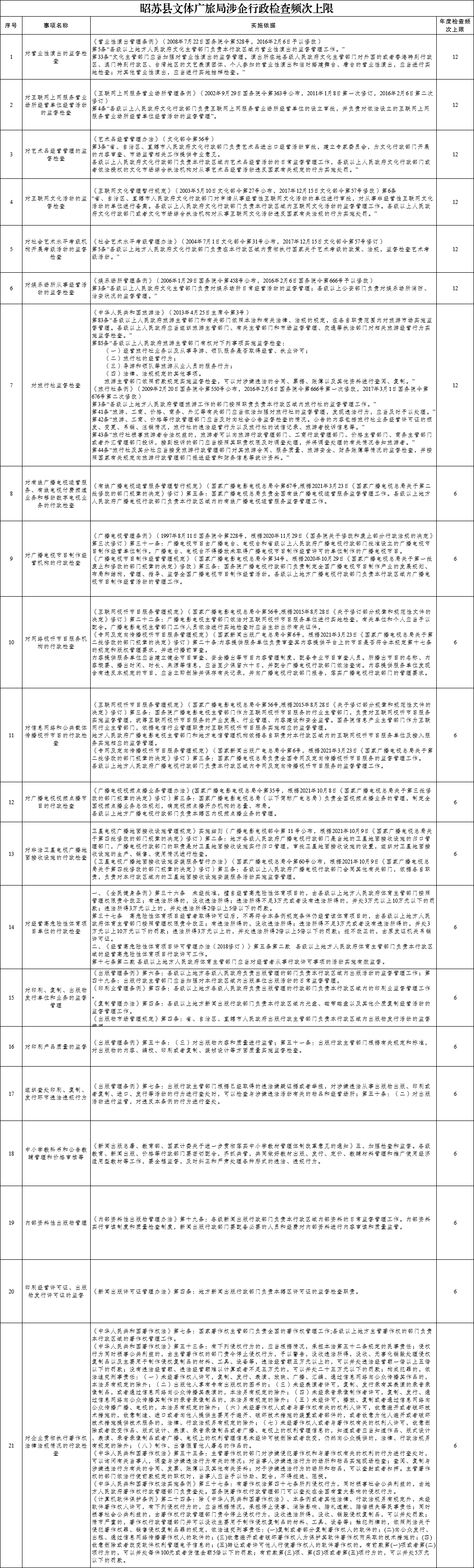 昭苏县文体广旅局涉企行政检查频次上限