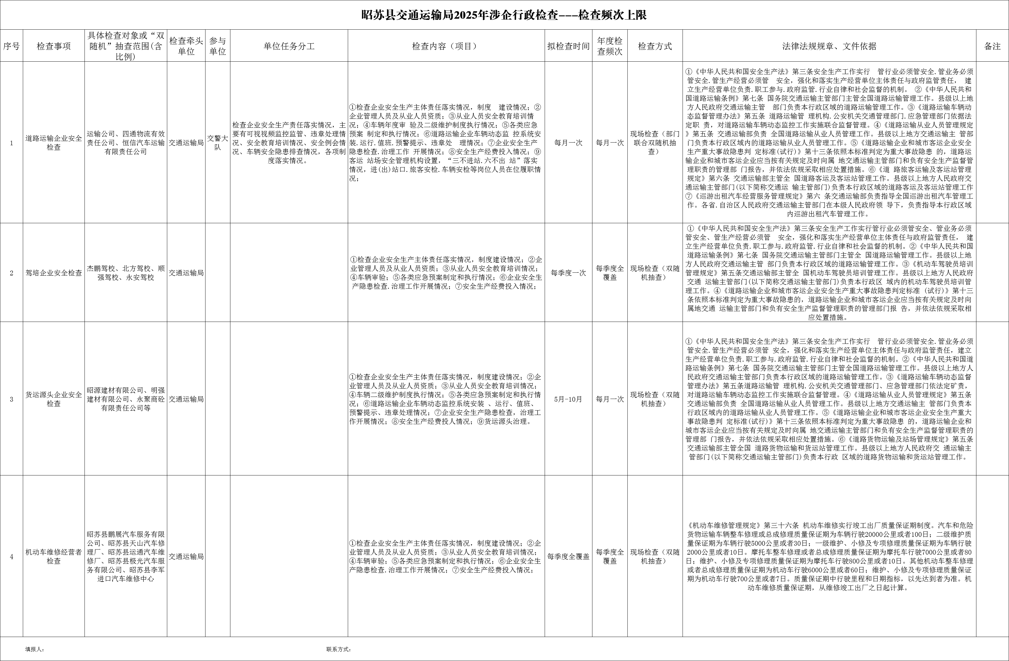 昭苏县交通运输局2025年涉企行政检查---检查频次上限