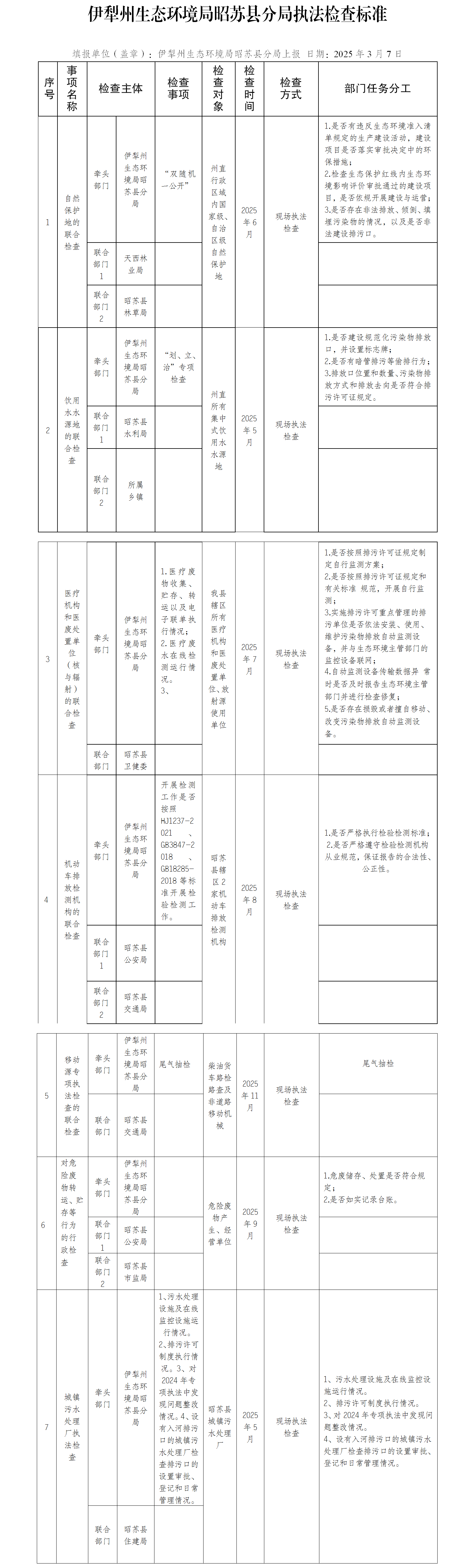 伊犁州生态环境局昭苏县分局执法检查标准
