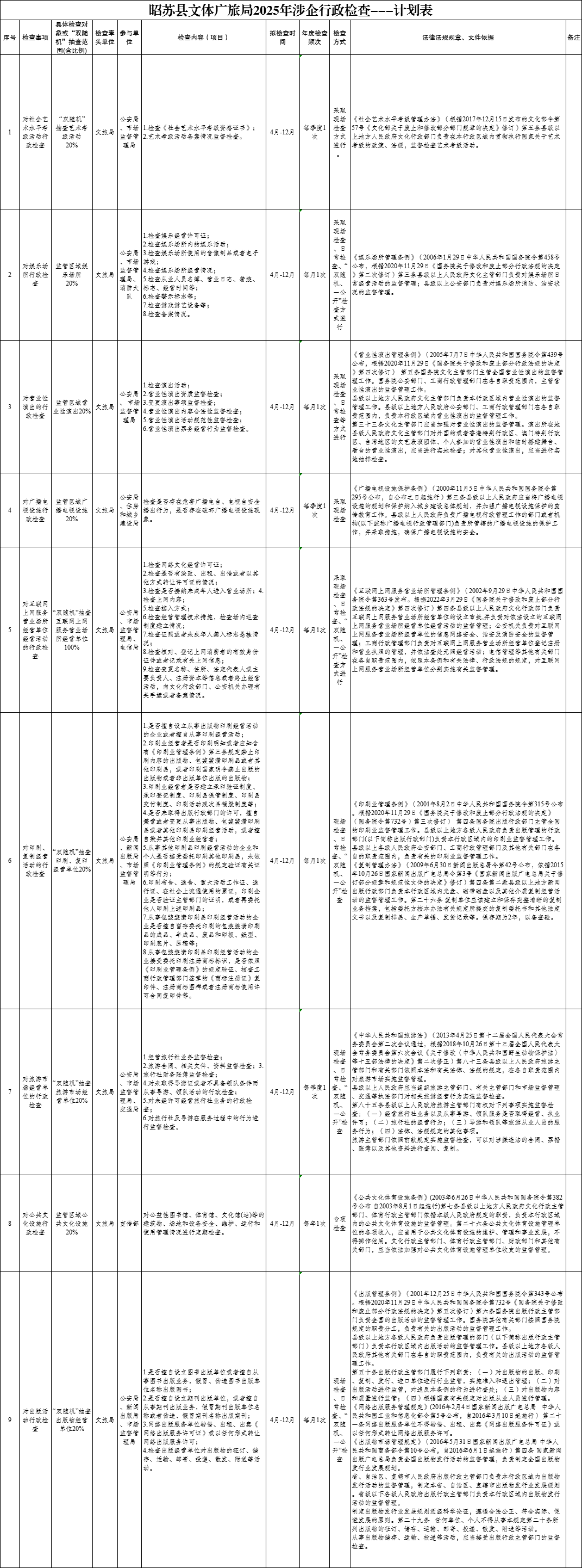 昭苏县文体广旅局2025年涉企行政检查计划表