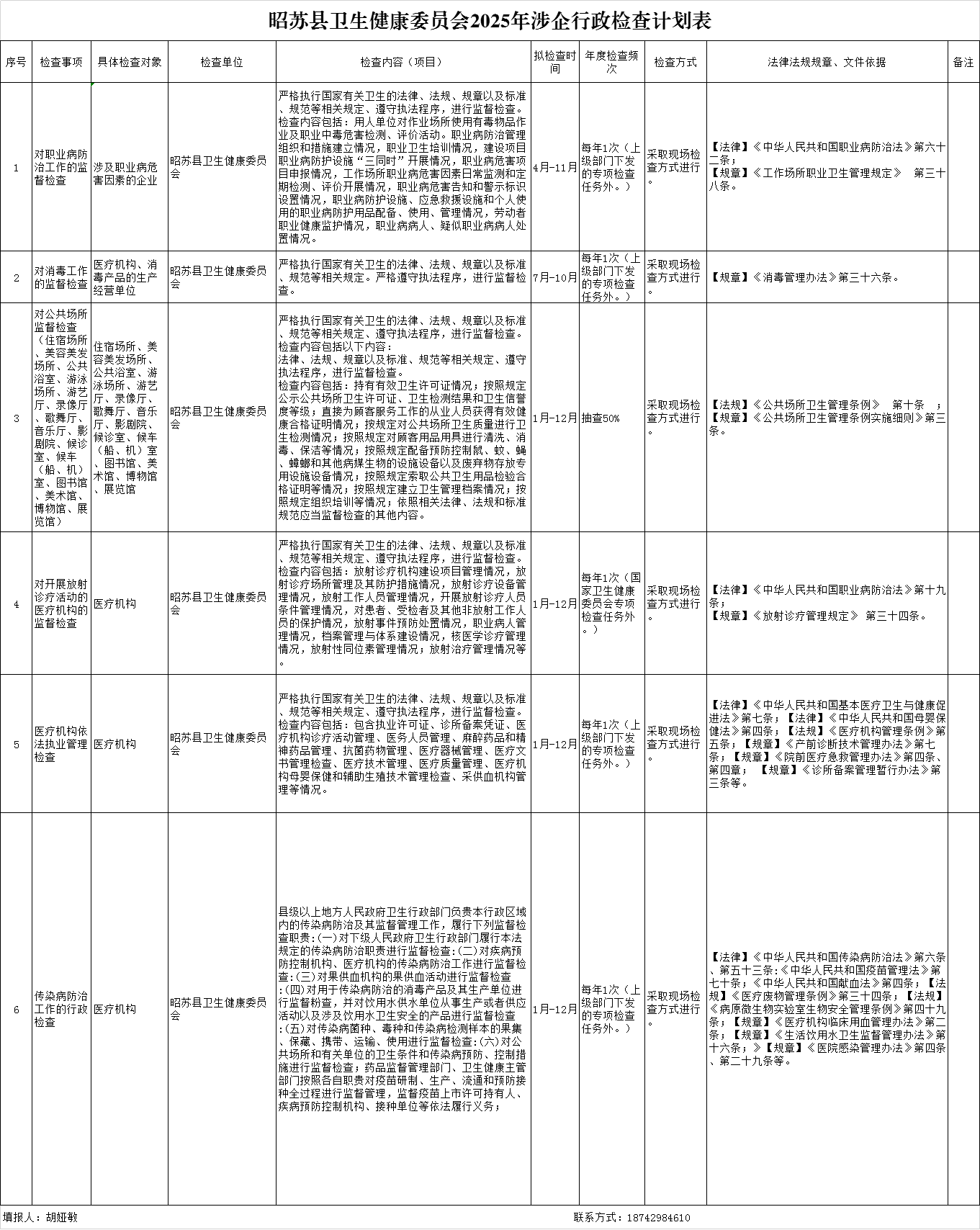 昭苏县卫生健康委员会2025年涉企行政检查计划表
